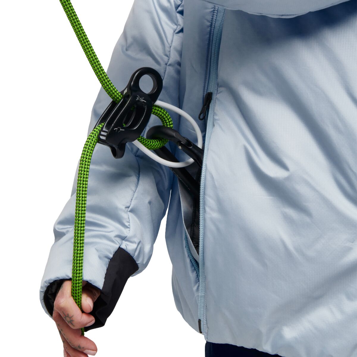 - 2-way zipper works with harness and belay devices