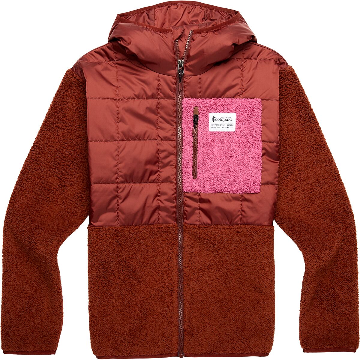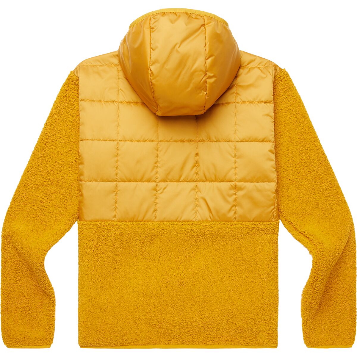 - [chest, upper back, hood, lining] 100% repurposed polyester taffeta, DWR treatment, 600mm PU backer [sleeves, torso, back] 100% recycled polyester fleece [chest, upper back, and hood insulation] 80g 100% recycled polyester
