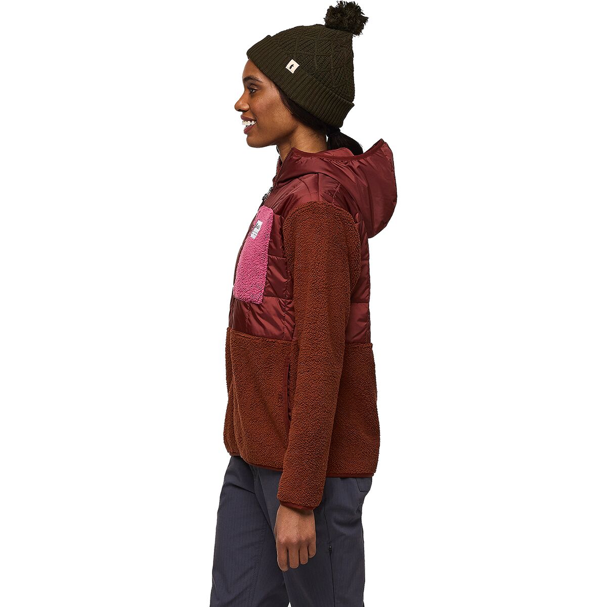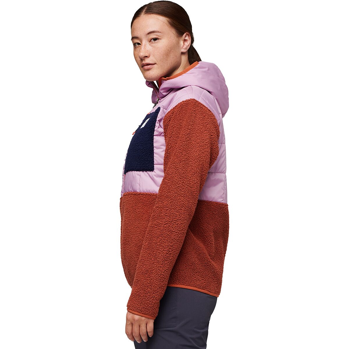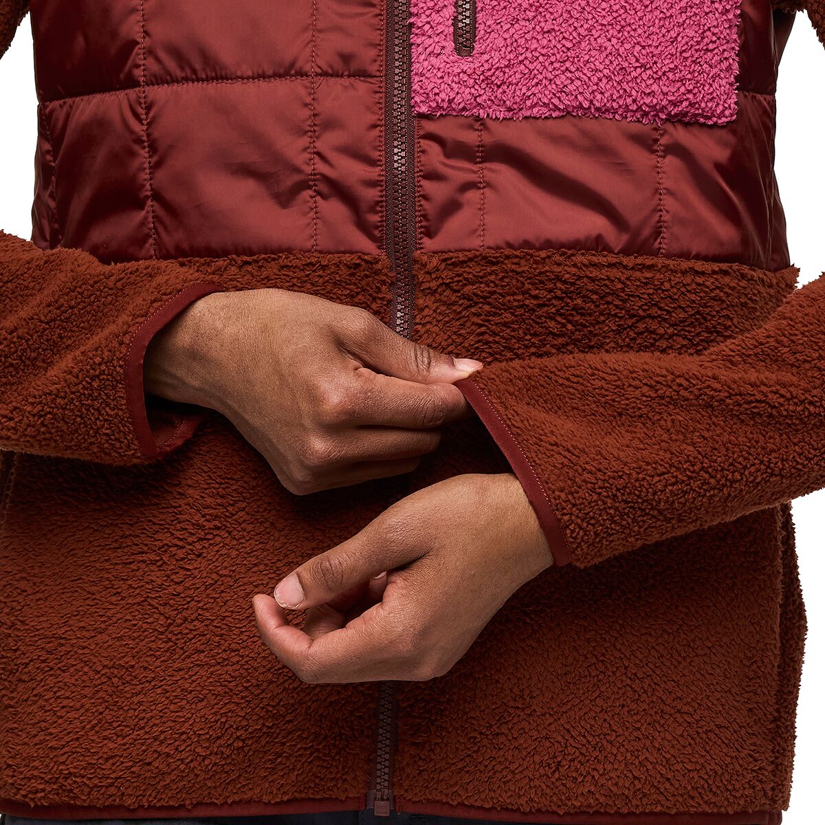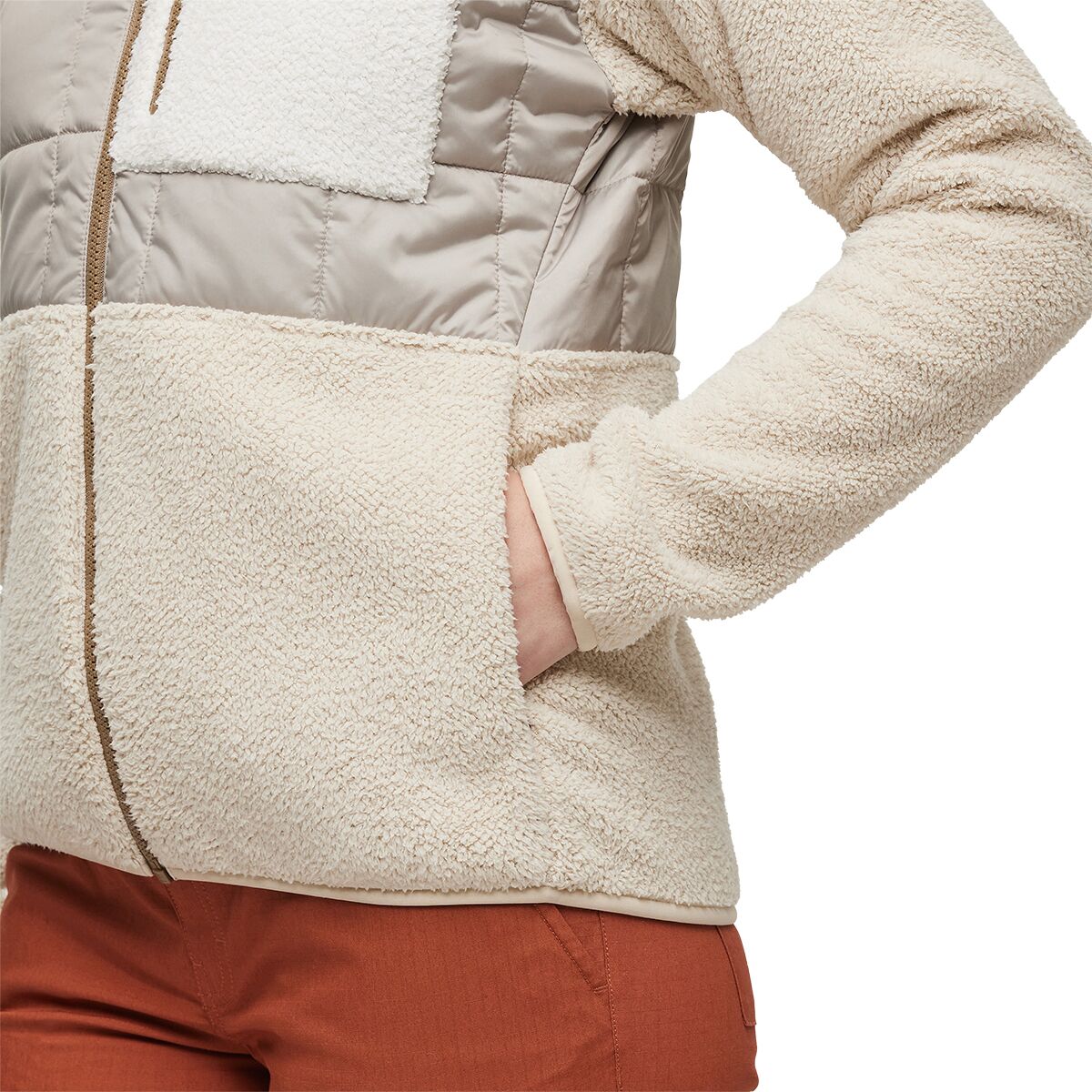 - High-pile fleece on lower torso and arms for cozy warmth