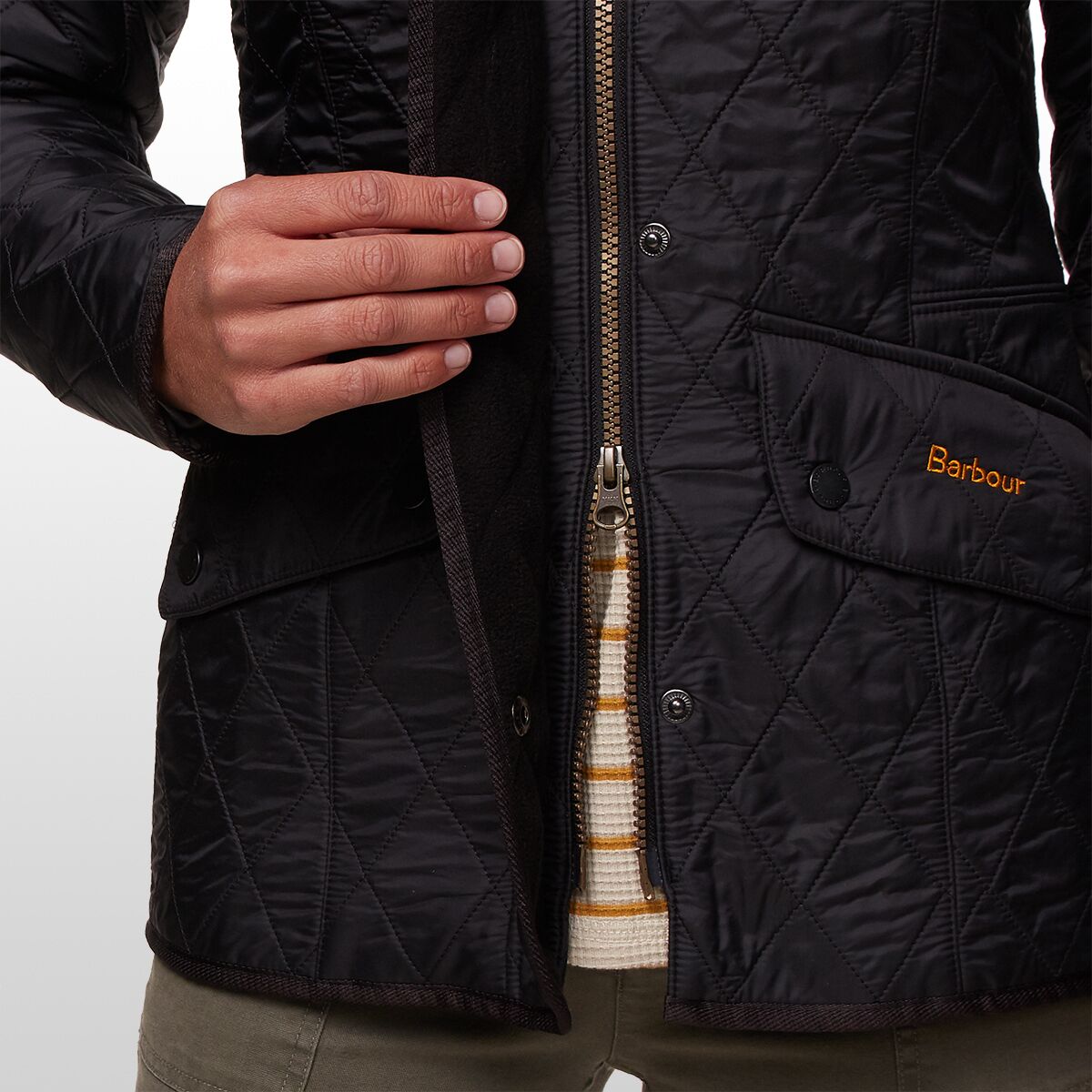 Inspired by classically styled equestrian jackets, the Barbour Cavalry Polarquilt Jacket brings a sleek, refined style and a cozy feel to our casual, cool-weather wardrobe. The Cavalry not only features a polished slim silhouette, but also boasts a fleece lining that curbs the cold and keeps you warm. A storm flap and generously sized collar keep pesky drafts at bay, and the two hand pockets easily safeguard necessities. So whether you´re meandering around the horse barn or the local park, the Cavalry provides ceaseless autumn style and comfort.