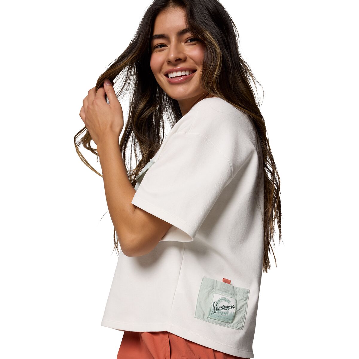 "I´ve worn the Cove Beach Cropped Pocket T-Shirt on casual outings and love how it feels. The Omni-Shade™ fabric provides excellent sun protection, and the cropped fit pairs perfectly with high-waisted pants. The mesh pocket is a practical touch, especially when I’m on the go. Plus, the retro-inspired design adds a stylish vibe to my wardrobe."