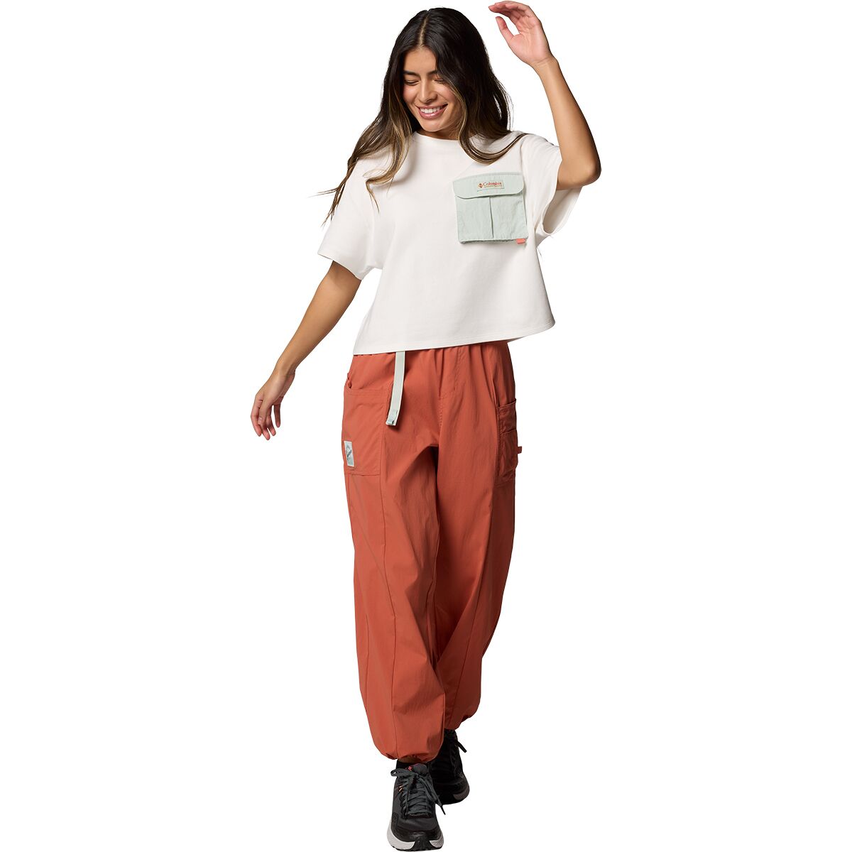 We love the laid-back style and practical design of the Cove Beach Cropped Pocket T-Shirt. Its relaxed fit keeps us comfortable during beach strolls or city explorations, while the Omni-Shade™ fabric blocks harmful UV rays, letting us soak up the sun worry-free. The cropped silhouette makes it easy to pair with high-waisted pants or shorts for a chic, carefree look.