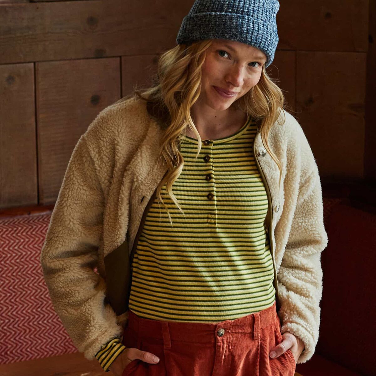 73% recycled polyester, 17% hemp, 10% elastane