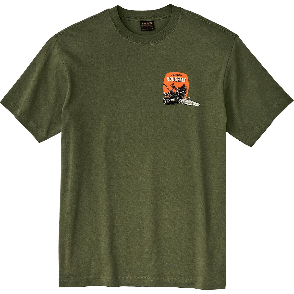 Filson’s Housefly Short-Sleeve Graphic T-Shirt is made to bring classic, outdoors-inspired style into our everyday lineup. Crafted from 100% cotton with a sturdy yet soft feel, it’s built to hold up through workdays, road trips, and all kinds of off-grid downtime.
