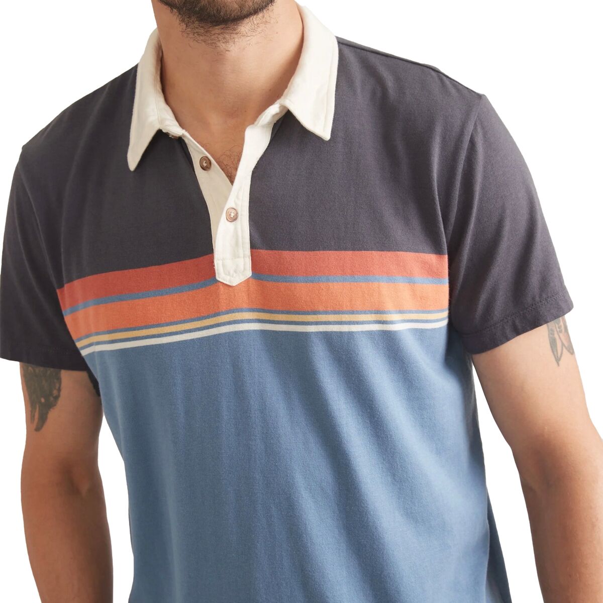 Marine Layer Short-Sleeve Engineered Stripe Polo Details Item #MLY00MK Tech Specs Material60% cotton, 40% Tencel Modal Fitregular Stylepolo Activitycasual