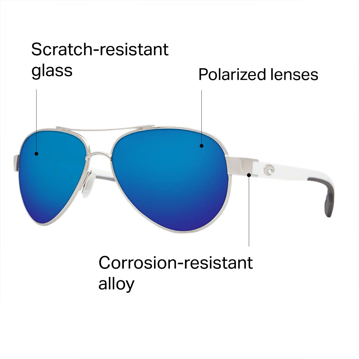 Whether you´re headed out on some grand adventure or just relaxing poolside, the Costa Loreto Polarized Sunglasses are the perfect fit. These aviator-hybrid style sunglasses feature a corrosion-resistant frame, making them perfect for life on the sea. The 580 glass lenses have excellent optical clarity and are scratch-resistant to make them last a long time. Stainless steel hinges ensure that no matter where you are, your sunglasses will always perform smoothly.