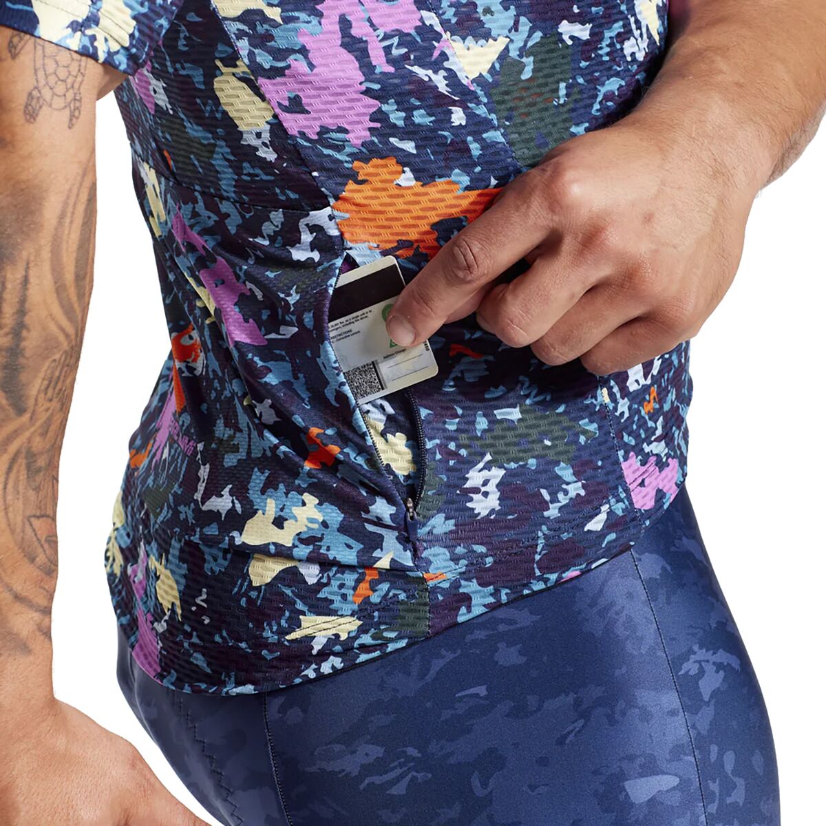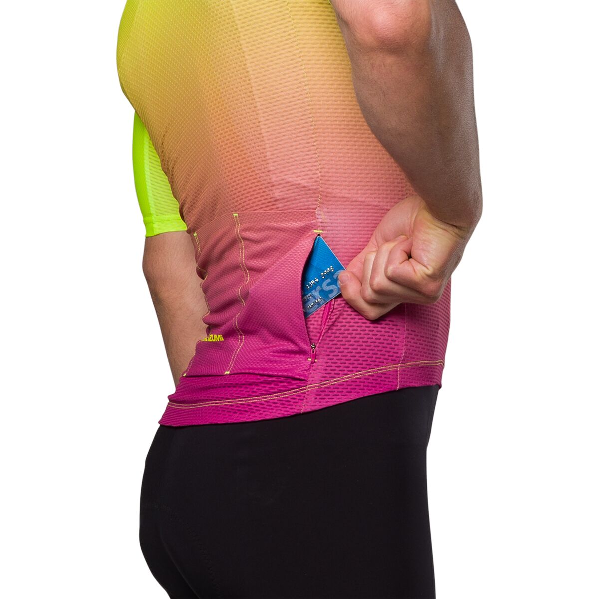 Pearl Izumi designed the Pro Mesh Jersey for high-output cycling in warm weather, and we like that it keeps us cool and comfortable throughout our ride. A combination of PRO Transfer Mesh and Pro Aero materials enhance airflow and aerodynamics where you need the most airflow around the core and aerodynamics in key leading-edge areas. Pearl Izumi´s patented Speed Sleeve construction optimizes the fit in your on-bike stance, yet the Pro is built with stretchy material that allows a comfortable fit in any position. The full-length zipper locks into place, but can be easily unlocked and opened with a single hand for mid-ride ventilation.