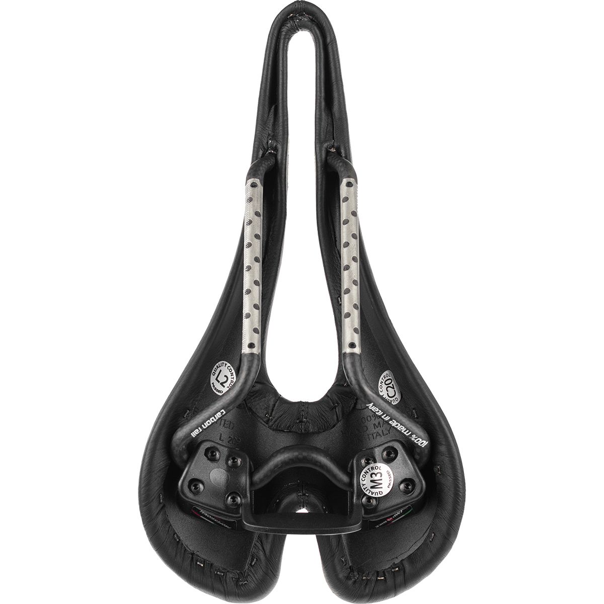 The saddle´s foam elastomer padding gets wrapped in soft, hard-wearing leather and covers a nylon/carbon composite shell that rides on lightweight and strong carbon fiber rails, ensuring a secure perch that´ll hold up to road, tri, and mountain applications.