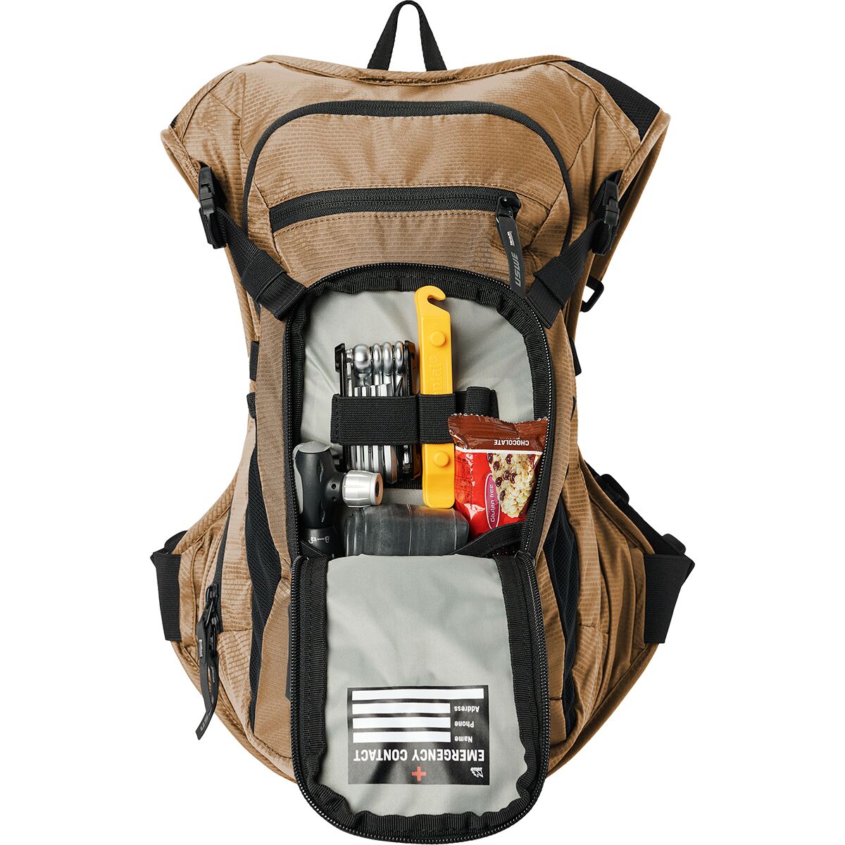 - Zippered organizer pockets store tools, snacks, and ride essentials