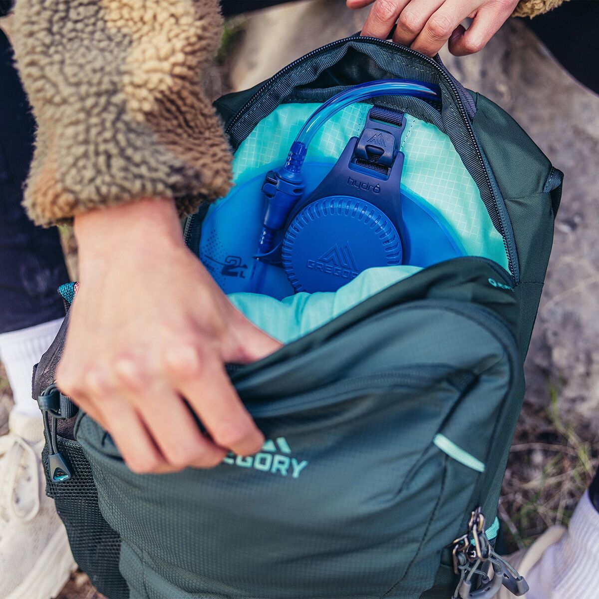 Gregory´s Swift 16L H2O Hydration Pack is the perfect size for all the water, snacks, and extra layers we need for an afternoon on the trail. The included reservoir allows for one-hand hydration on the go, while easy access external pockets keep our small essentials at hand.