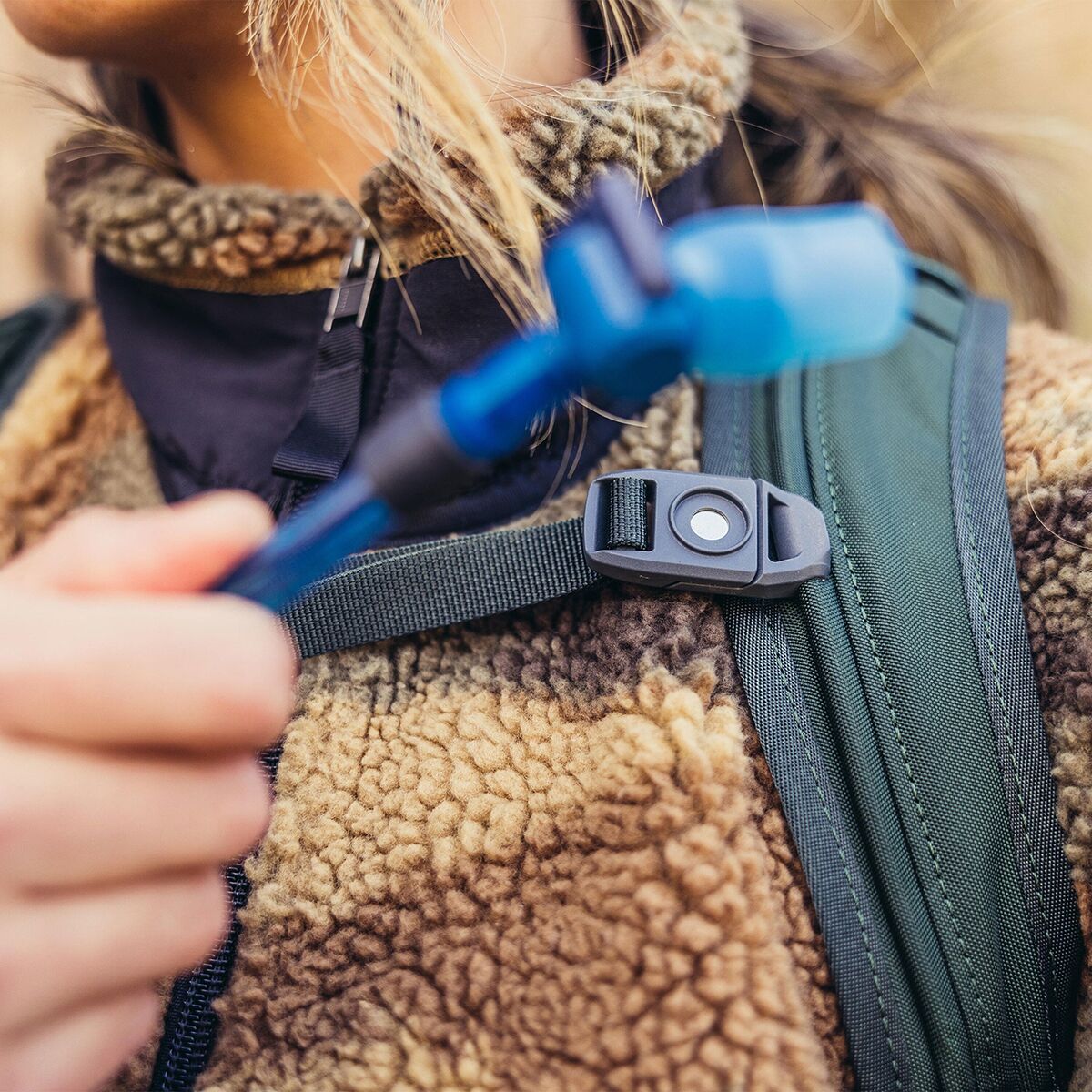 - Hydration pack holds the essentials for long day hikes