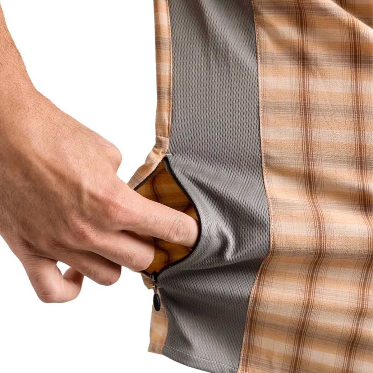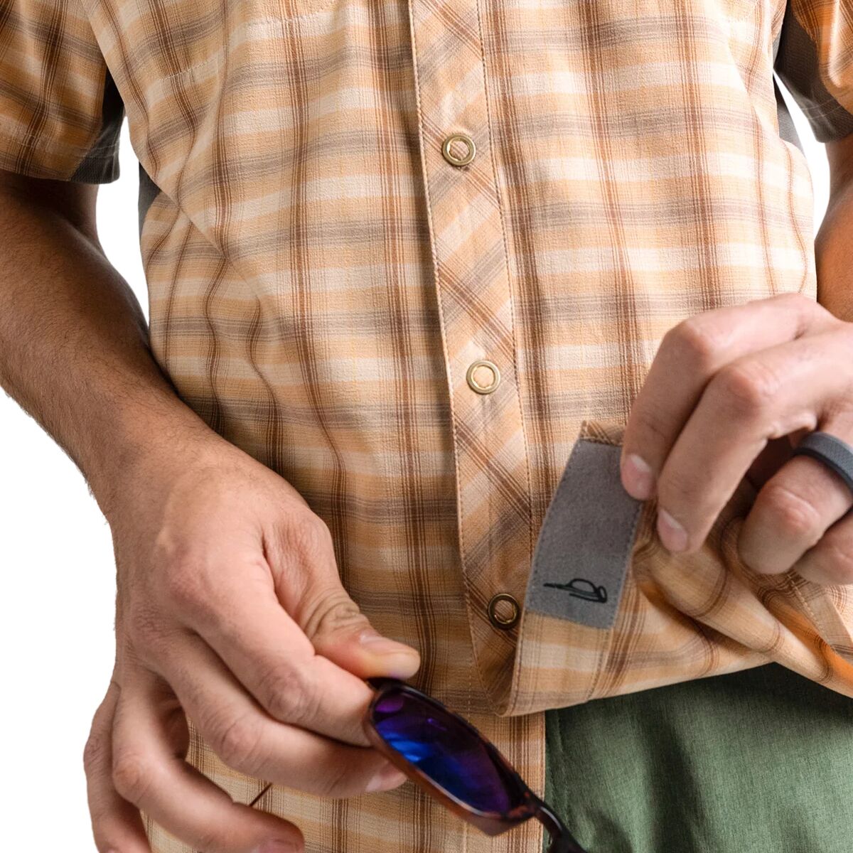 - Stretch-woven jersey fabric with wicking, quick-drying tech