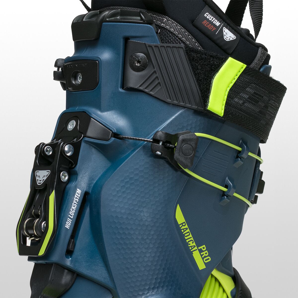 The Radical Pro Alpine Touring Boot has earned itself an esteemed reputation within our Herd because it´s meticulously crafted with input from Dynafit´s athletes and engineers to function without compromises. Built for the established backcountry skier, this boot utilizes a burly 120 flex and aggressive Radical Pro liner for arcing powerful turns at speed, no matter the snow depth. The HOJI lock closure offers a 60-degree range of motion, encouraging us to extend our outing from two laps to four without thinking twice.