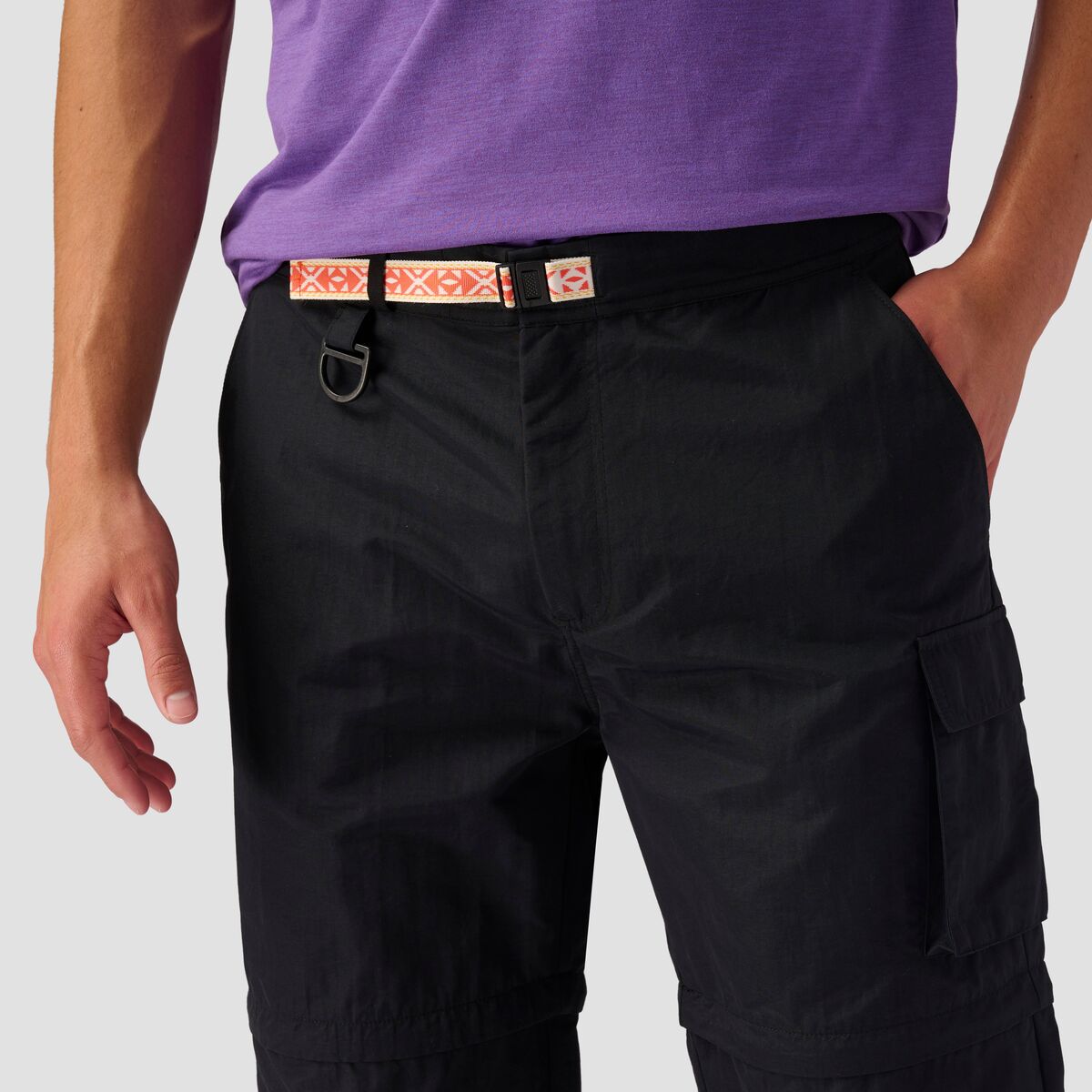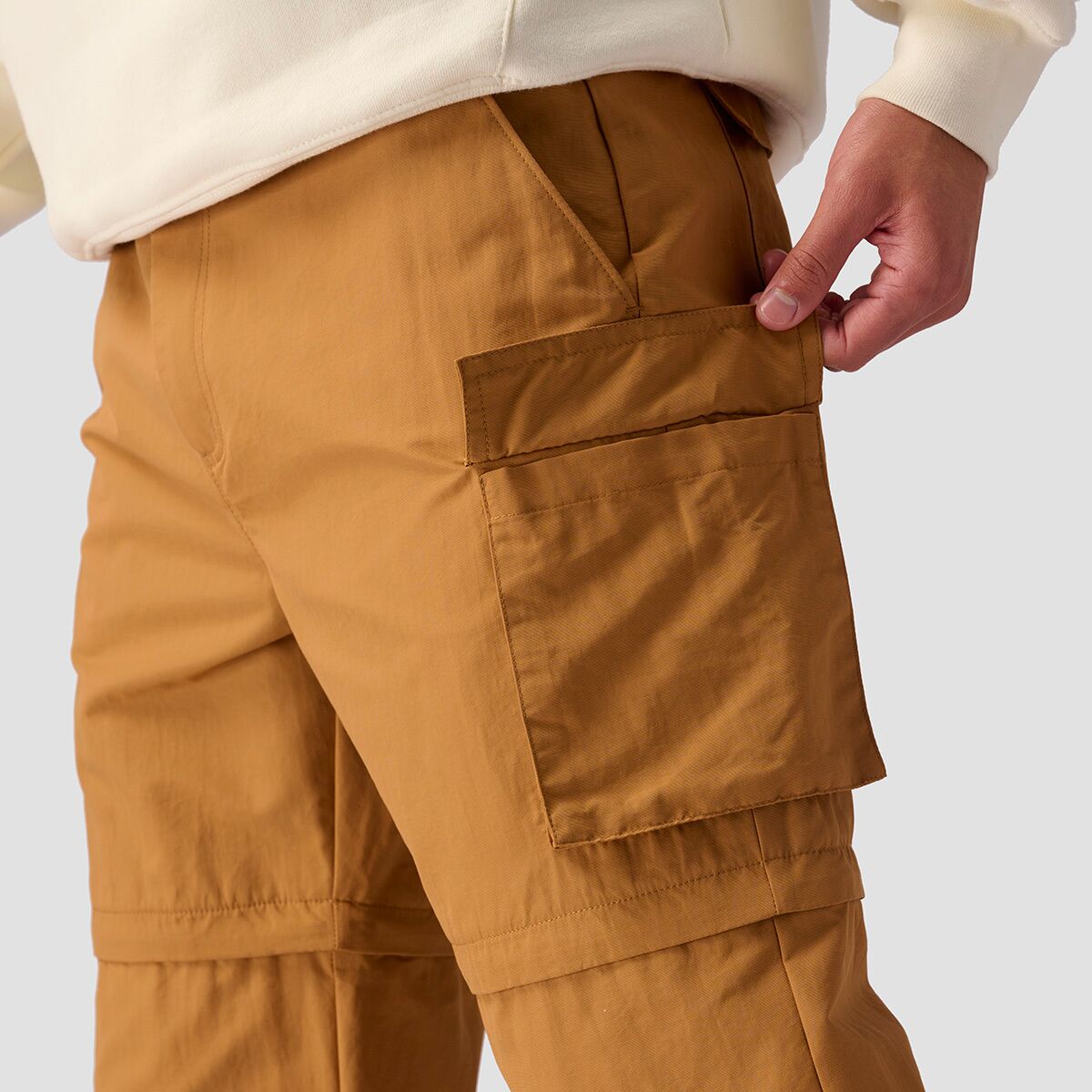 - Zip-off pant leg gives us pants and shorts in one