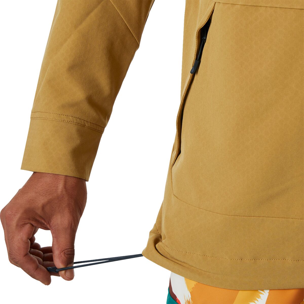 • Two zippered hand pockets and a zippered sleeve pocket stash our essentials
