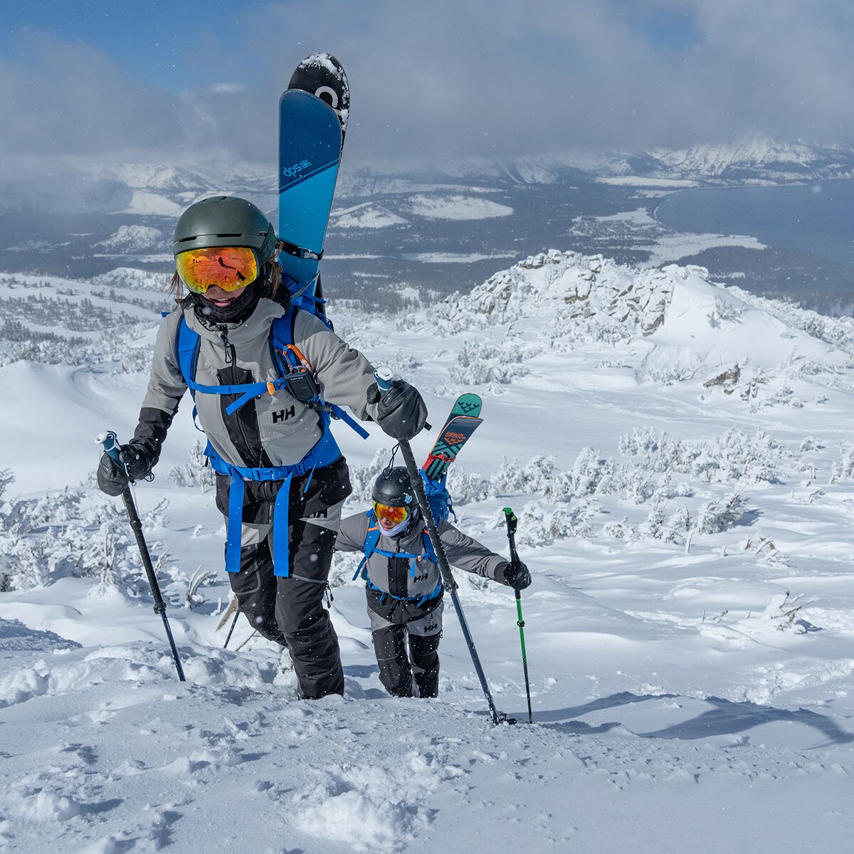 The Helly Hansen Odin Backcountry Softshell Bib Pants are excellent companions for fast-moving ski tours. They are made from lightweight, 4-way stretch fabric so we can move freely up the skin track and push the limit on steep descents. The adjustable elastic suspenders keep the pants in place while offering a secure fit. The side zip vents circulate warm air out as well as making the pants easier to get on and off, and the snow gaiters in the legs block snow from sneaking into our boots while we´re in deep powder. The bottoms of the legs are reinforced with extra fabric for durability and are able to be adjusted to find the perfect fit. The D-ring attachment is perfect for stashing our beacon so we can always have quick access to help as we venture into the backcountry.