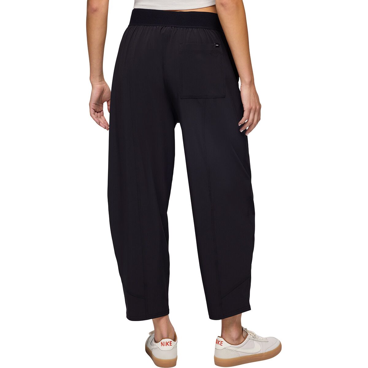 The prAna Railay High Rise Pant combines recycled fibers, stretchy comfort, and unexpected performance for versatile wear. Crafted from a recycled polyester blend, this relaxed-fit pant is a responsible choice for our active lifestyle. The elastic waistband and high-rise design offer a secure and flattering fit, while practical details like a side zipper pocket and slash hand pockets keep essentials within reach.