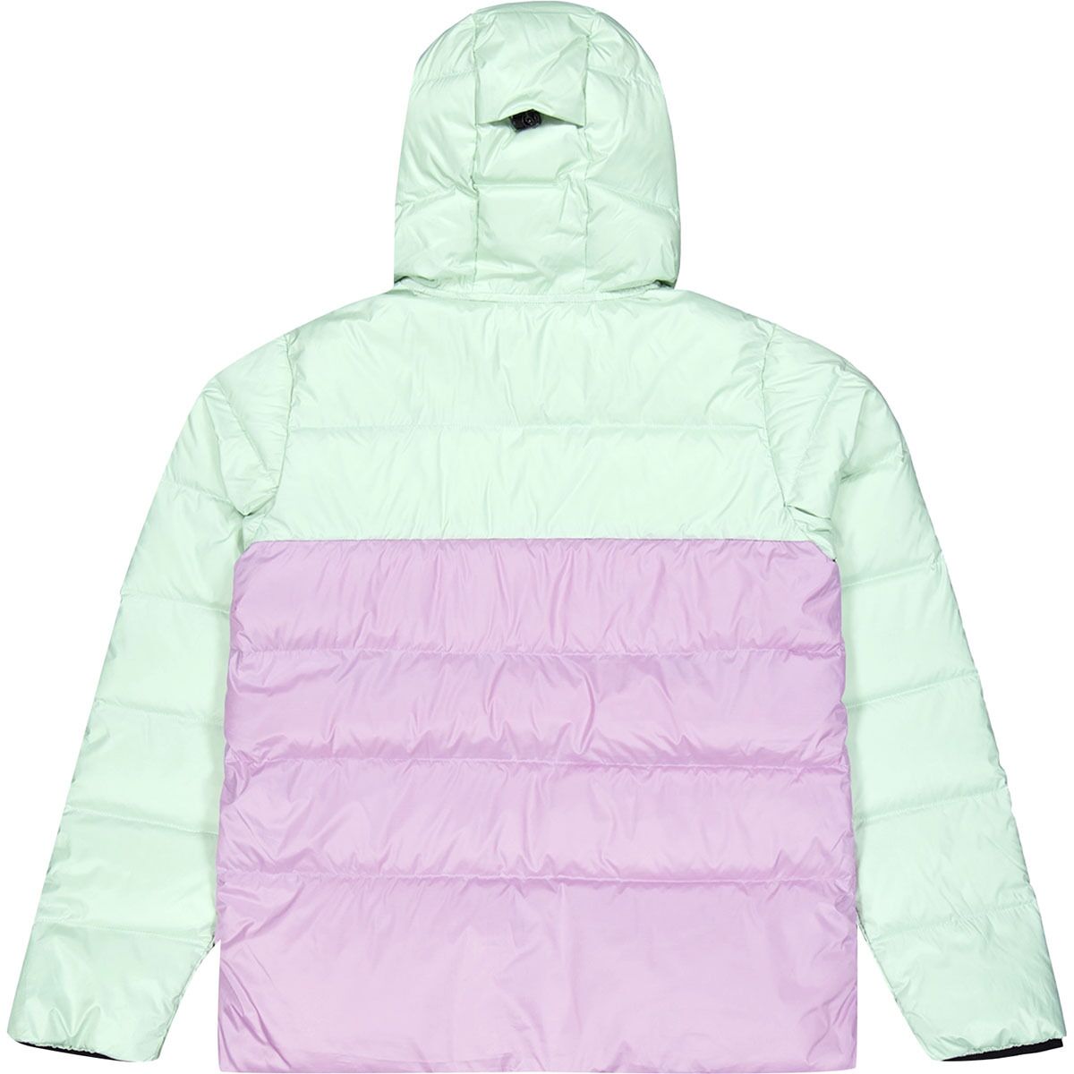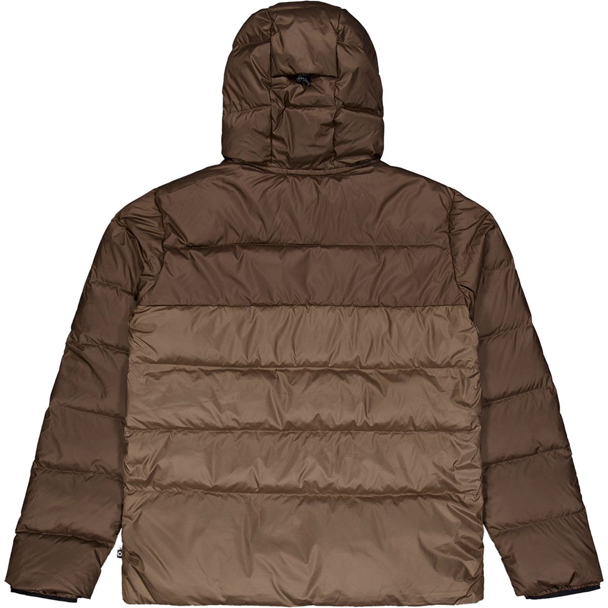 - Down-filled, ergonomic hood stays in place as we move