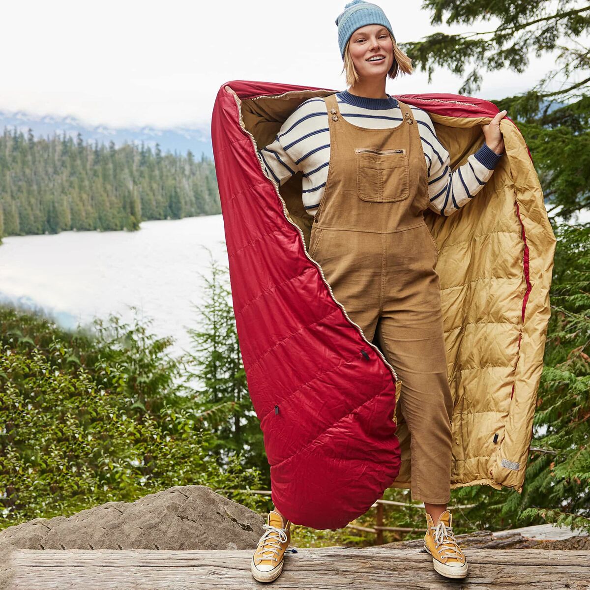 • Corduroy overall for rugged-chic, shoulder-season style