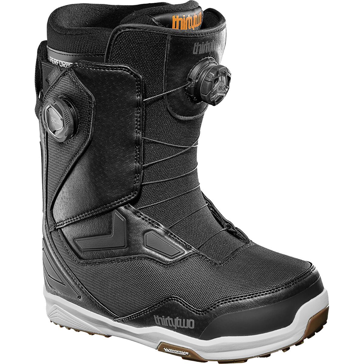 As versatile as they come, thirtytwo´s TM-2 Double BOA Snowboard Boot brings customized comfort and stability through two independent dials, making it supportive enough for big-league charging, yet flexible enough for tweaking out tricks. The Performance Backstay maximizes response where we need it most, and a thermo-moldable Performance liner comfortably conforms to the foot´s shape. Updated for this season, the Michelin Fiberlite sole brings a new level of impact-absorption and traction to one of our favorites.