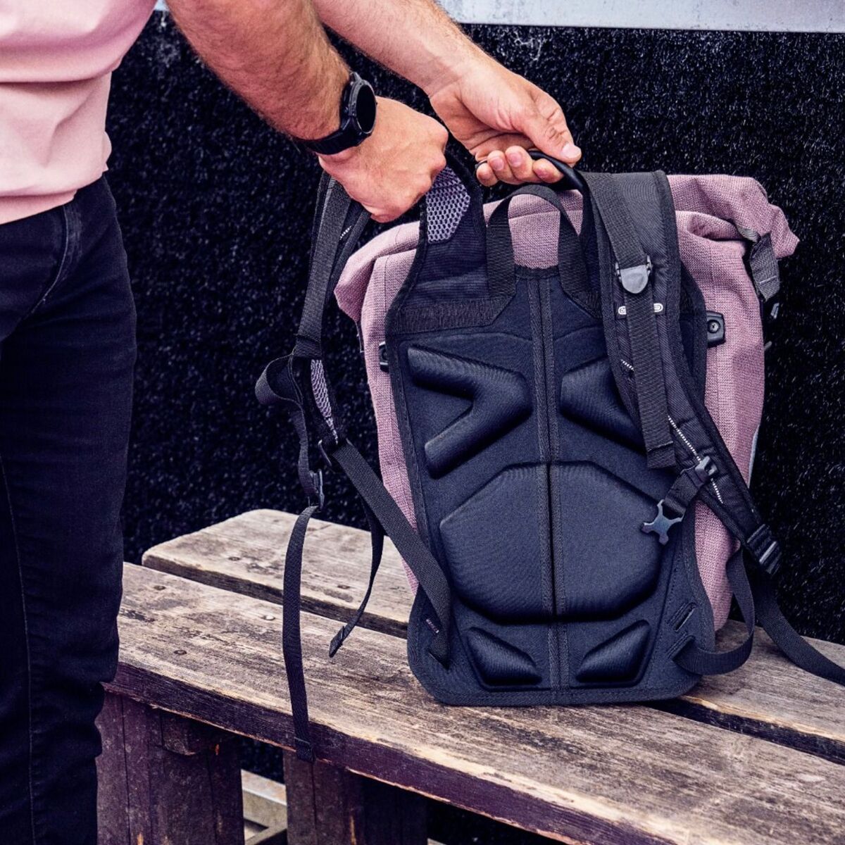 Whether youre traveling by bike or foot, with the lightweight Carrying System your pannier can accompany you on both. When worn, the Carrying System ergonomically adjusts to your back, allowing air to circulate comfortably and keep sweat at bay. When not in use, the Carrying System can simply be rolled up lengthways and stowed inside your pannier without taking up much space. To attach the Carrying System to your pannier, hook the top loops into the panniers Quick-Lock hooks, and snap the buckles into the base edge protectors of your bag. Additional load control belts even make bags with auxiliary fasteners easy to carry.