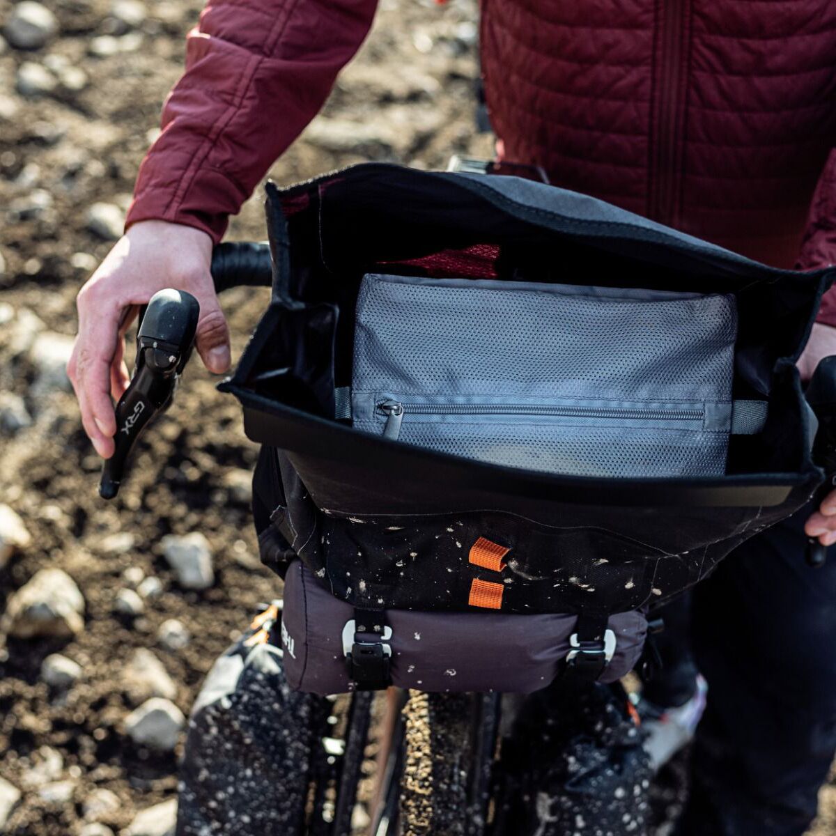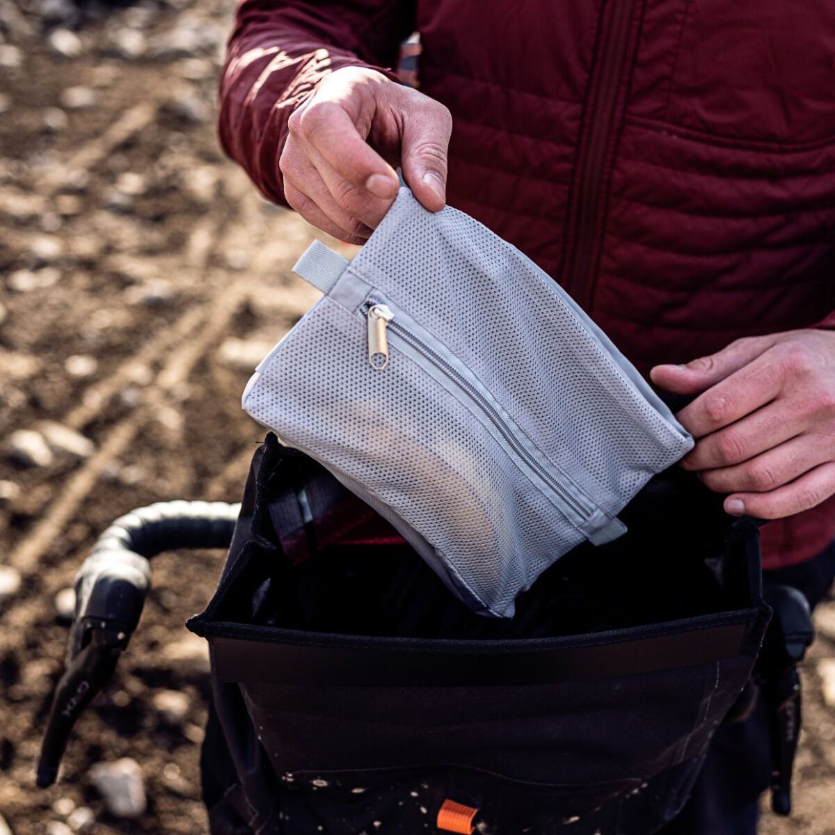 The integrable mesh inner pocket with zipper for the Handlebar-Pack QR.