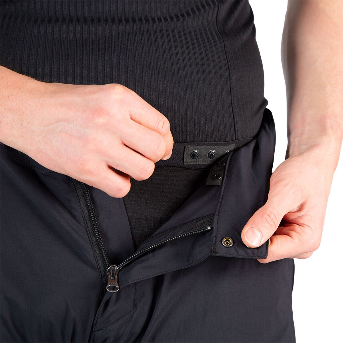 - elastic jacquard waistband, zippered fly with double-snap closure