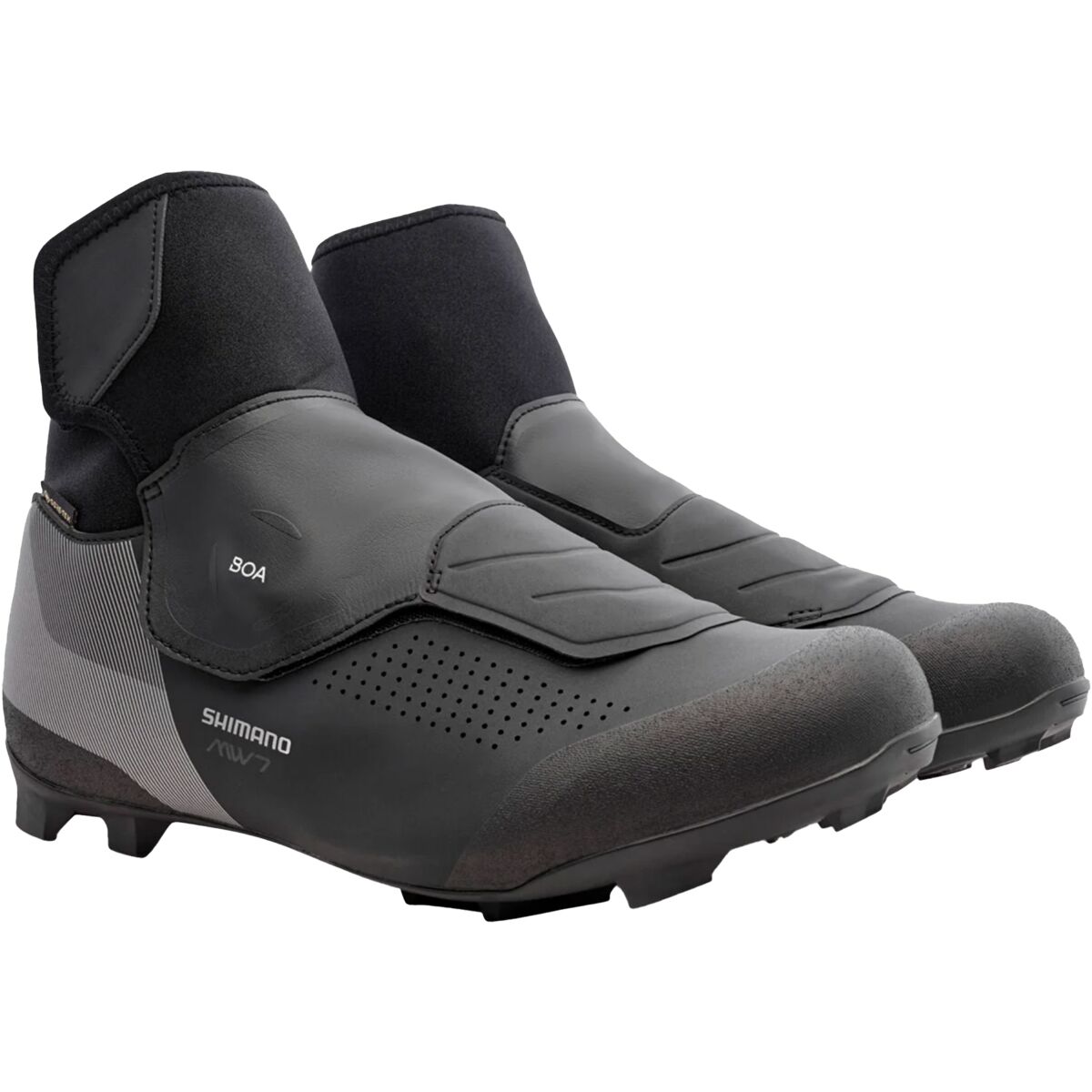 Gravel grinders and cross-country racers alike are stoked about Shimano´s new winter-ready shoe. The Shimano MW702 Mountain Bike Shoe features a durable and abrasion-resistant upper that is finished off with a water-resistant hook-and-loop covering, an extended ankle sock, and a BOA L6 dial for a secure and comfortable fit. The GORE-TEX lining seals out all moisture and insulates our foot so we stay comfortable and dry, and the ULTREAD XC outsole provides outstanding grip in slippery terrain when off the bike. A fleece insole adds extra warmth and comfort, and the 2-bolt cleat works with all mountain clipless pedals for easy integration.