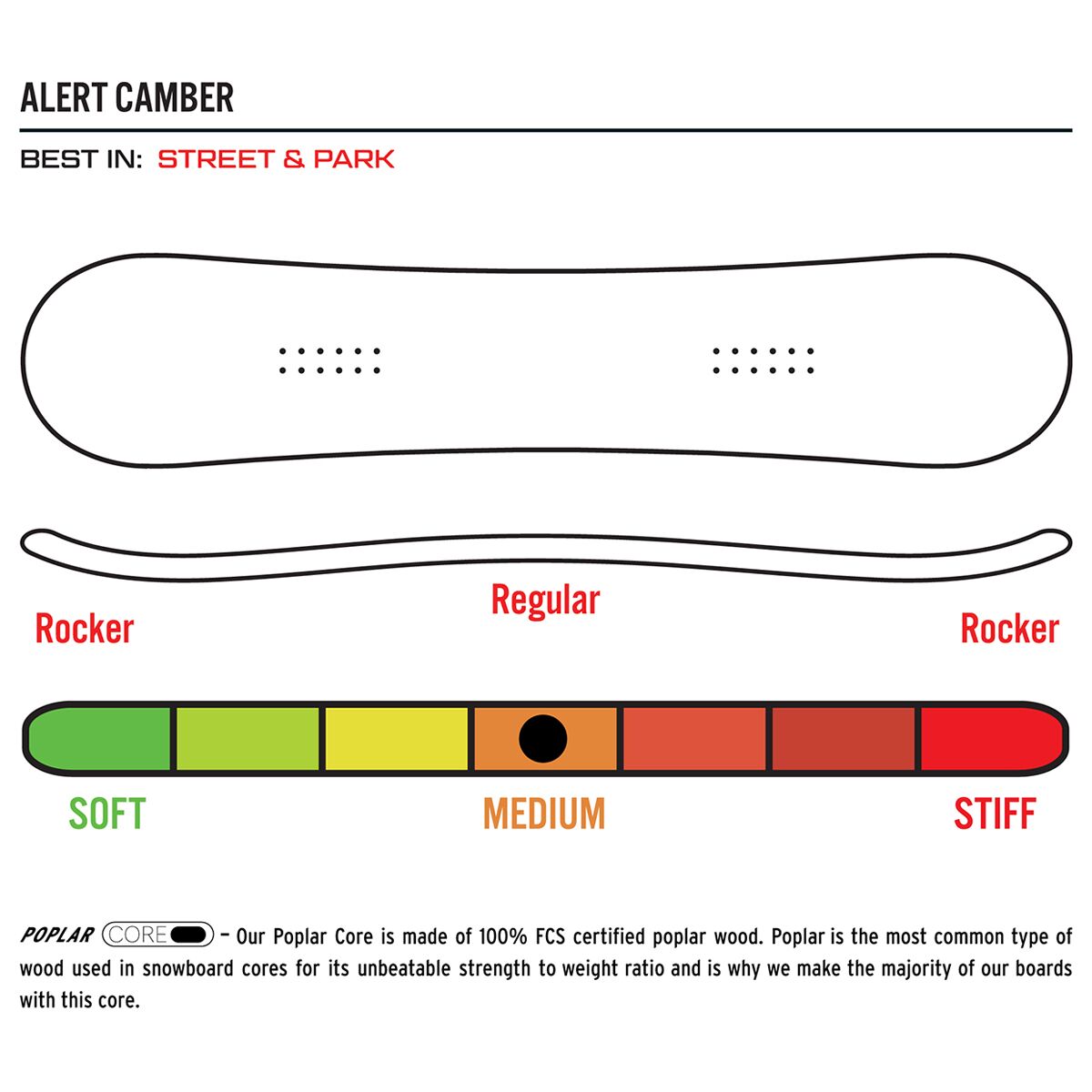 - Street snowboard for performance across the park, groomers, and side-hits
