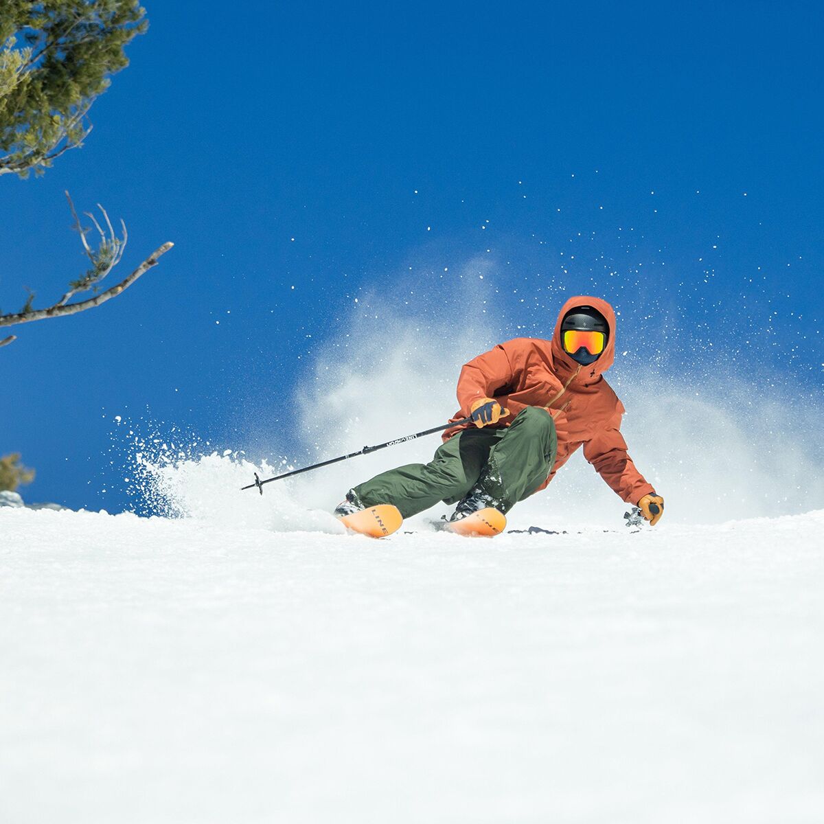 For those of us who turn every run down the hill into a hot lap, the Line Blade Optic 96 Ski is a dream. The 96mm waist width is able to handle a wide variety of conditions, thriving on the cut-up corduroy. This ski loves it when we point our tips down the mountain and turn on the afterburners. The Gas Pedal Metal Overdrive places titanal throughout the ski to increase edge grip, torsional stability, and precision which results in a smooth, stable ride packed with lively energy. The early rise in the tip and tail keeps the ski floating high in moderate powder and brings our contact points closer to our center of gravity for a more responsive turn initiation on the hard pack. The lightweight aspen core keeps our legs fresh so we can hit the slopes again the next day and the day after that.