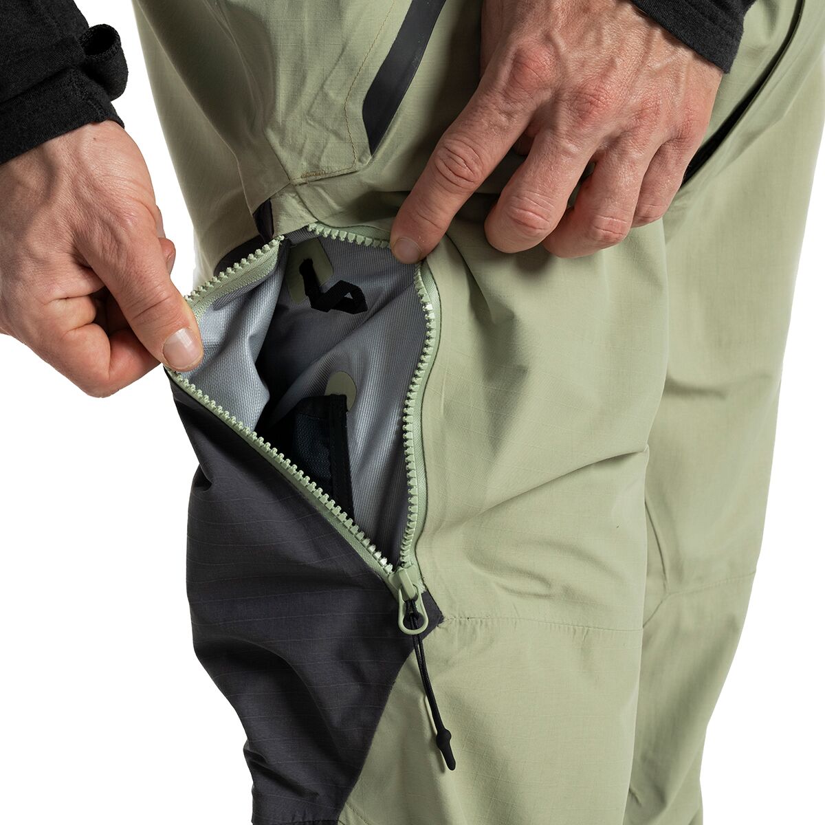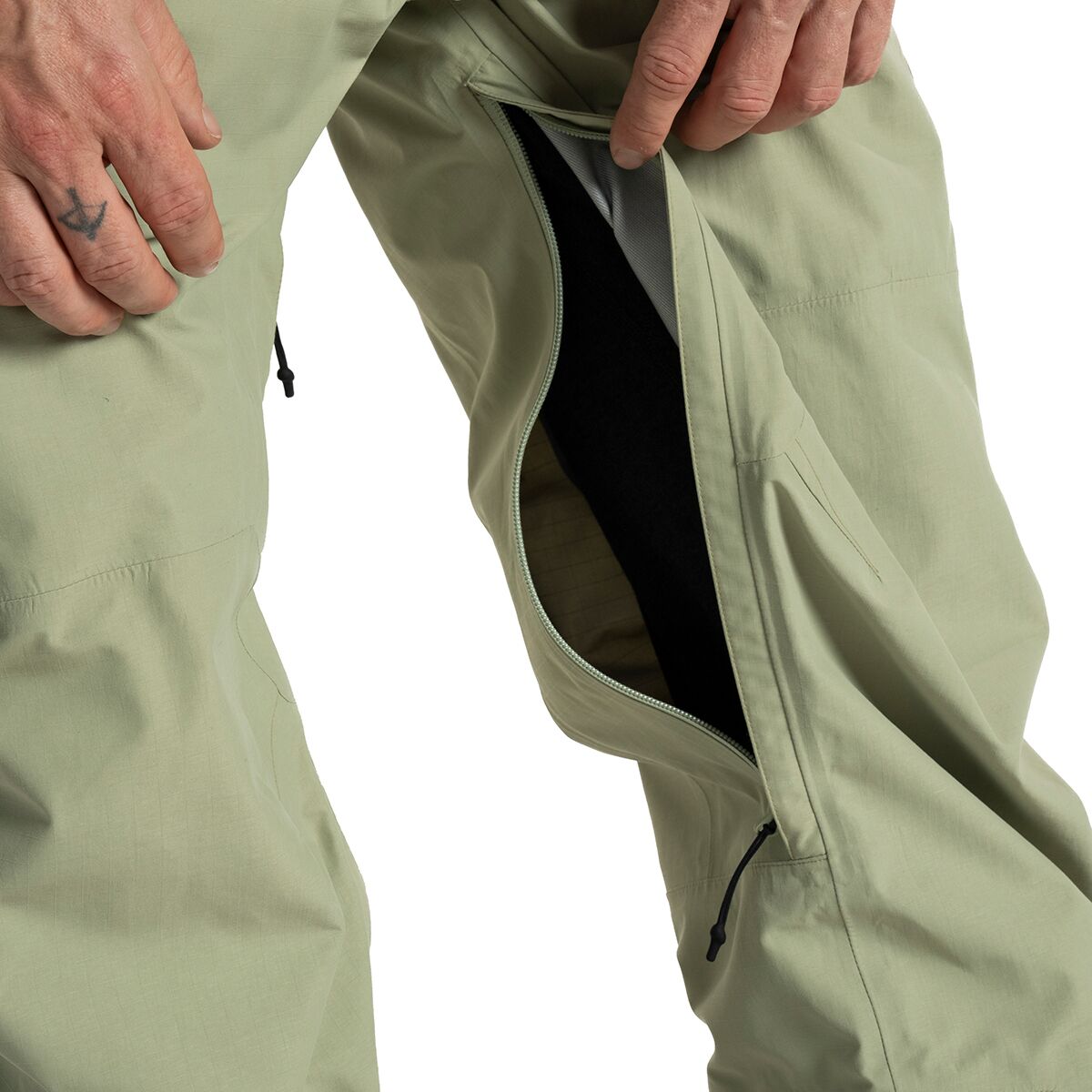 - Zippered mesh-lined thigh vents dump excess heat