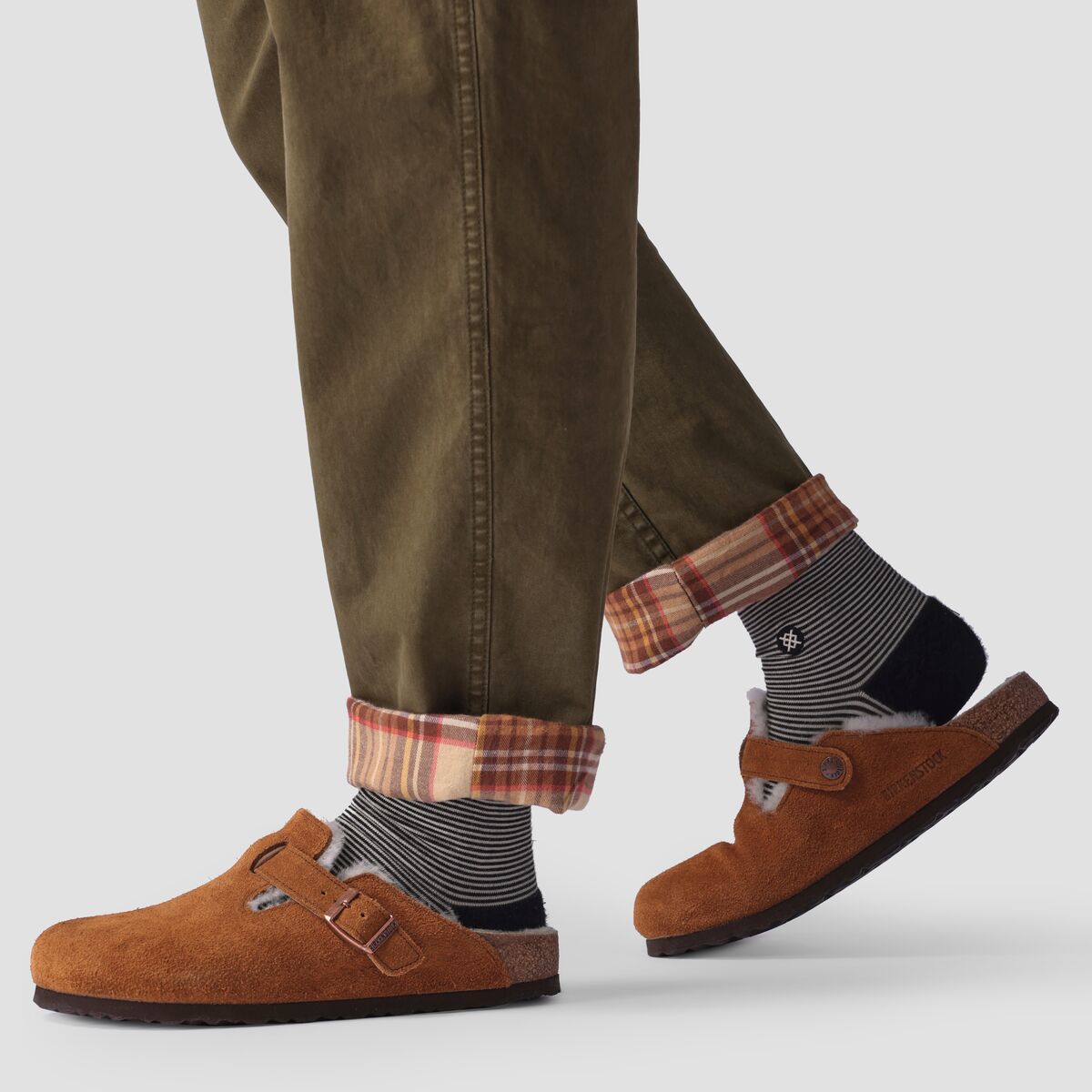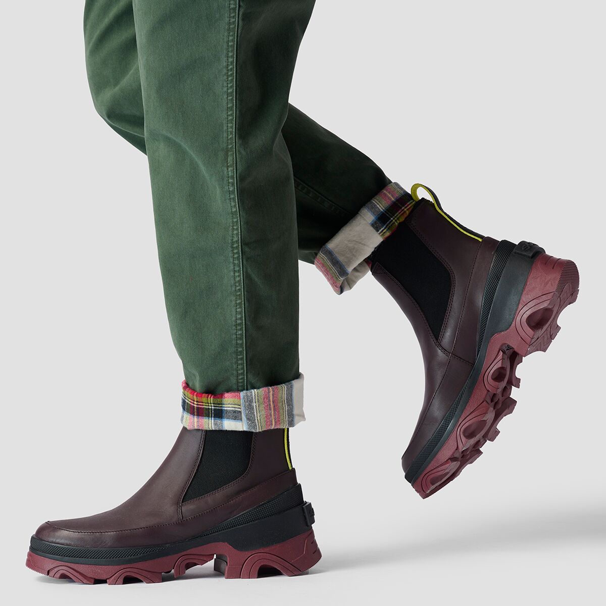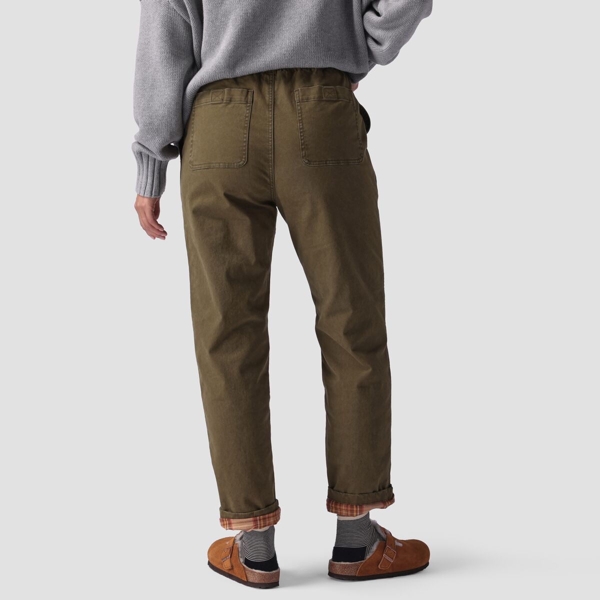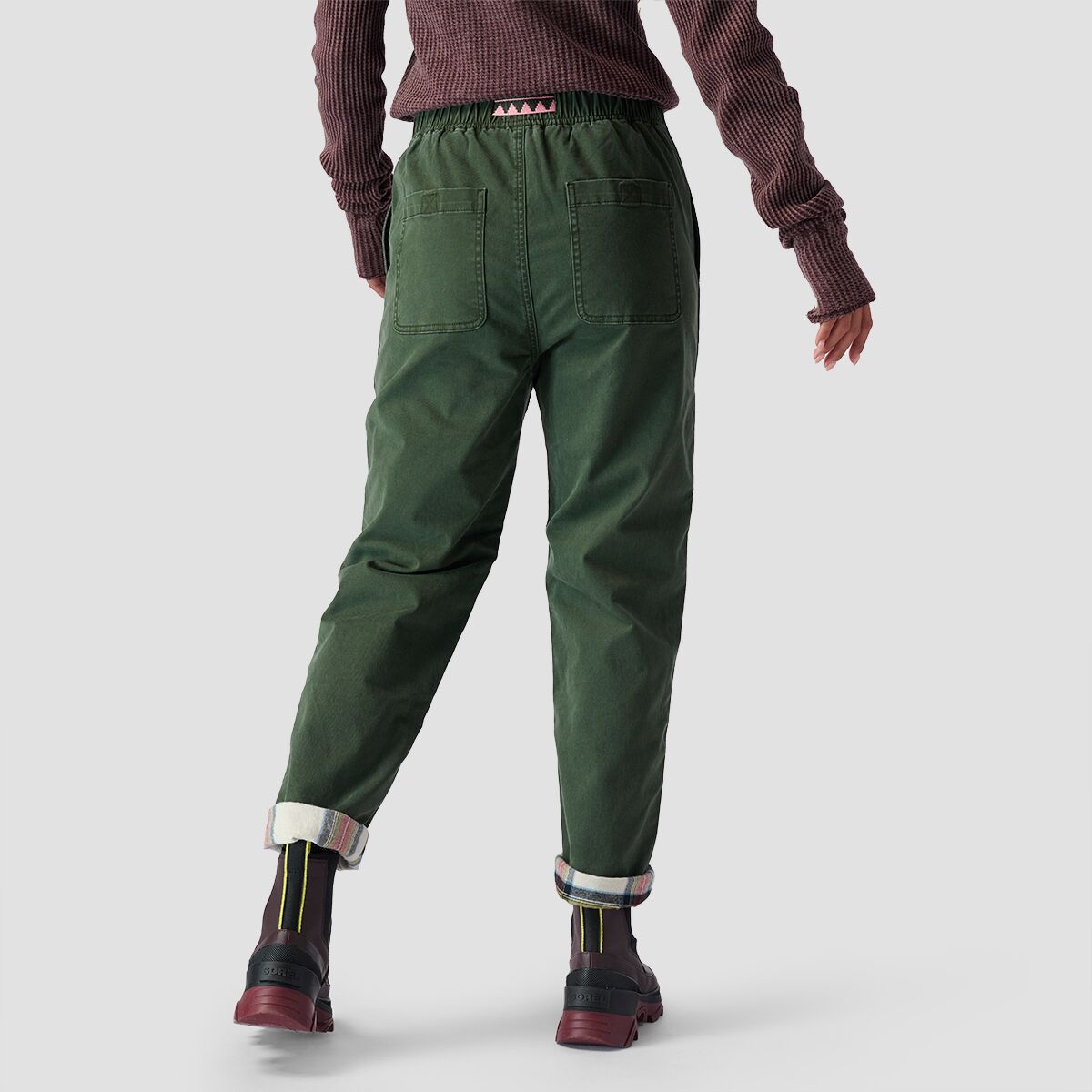 • Cozy flannel lining adds heat and offers contrast with pants cuffed
