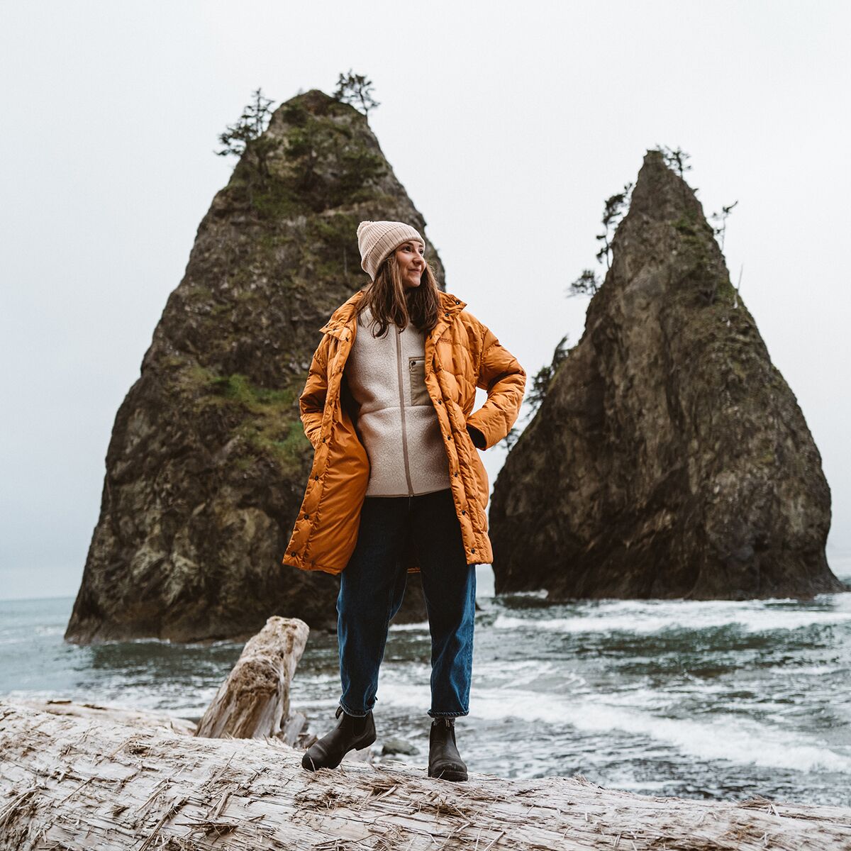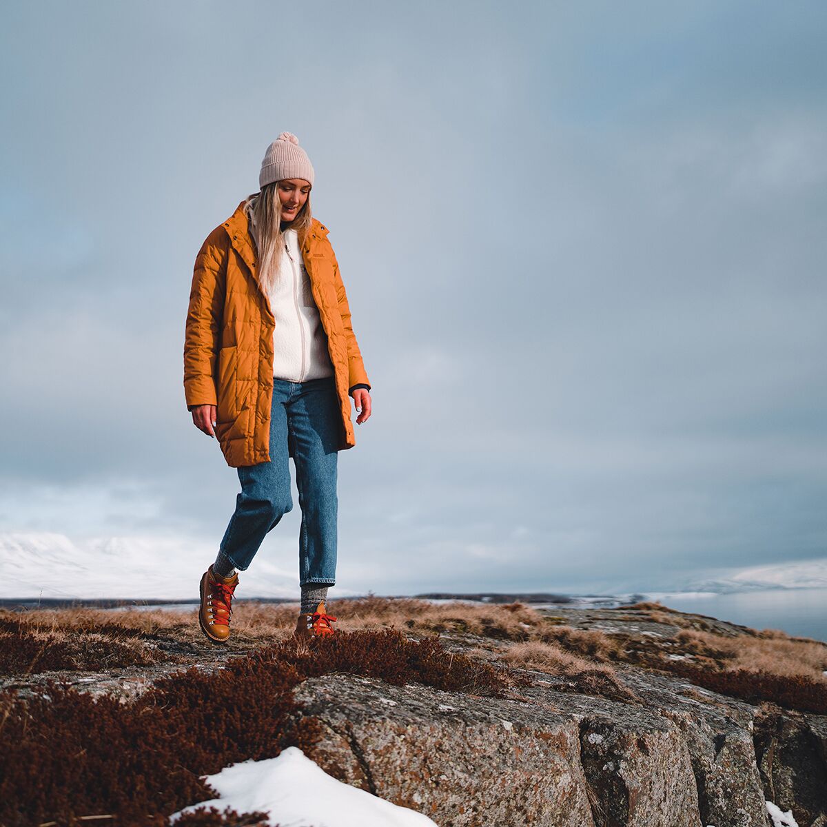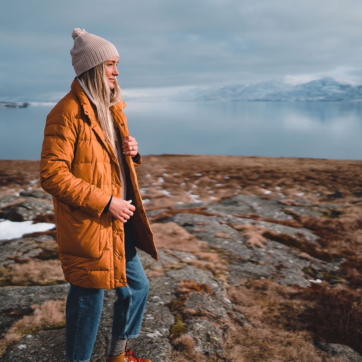 • Longline puffy jacket for wintertime wandering