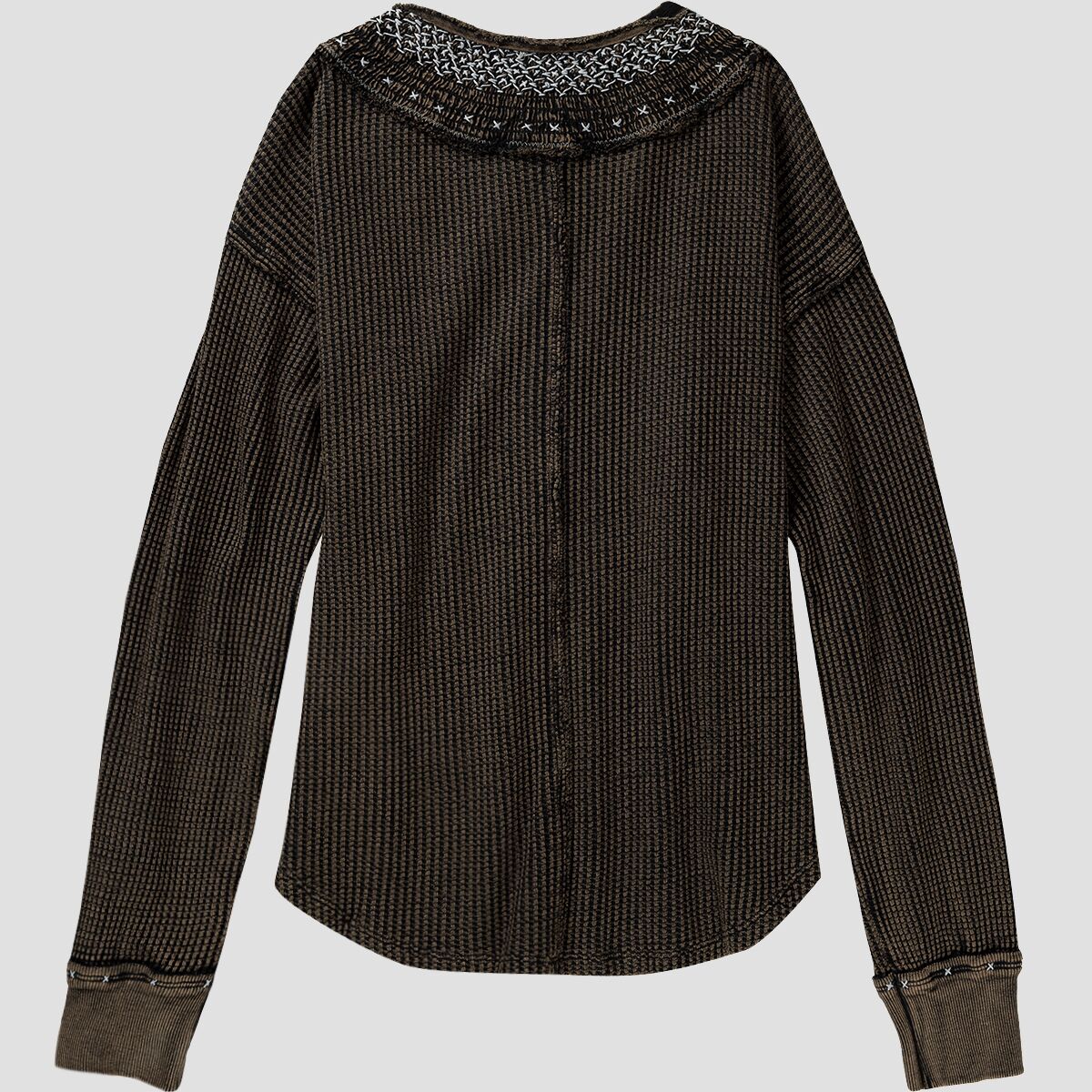 • Henley-style neckline with button closure