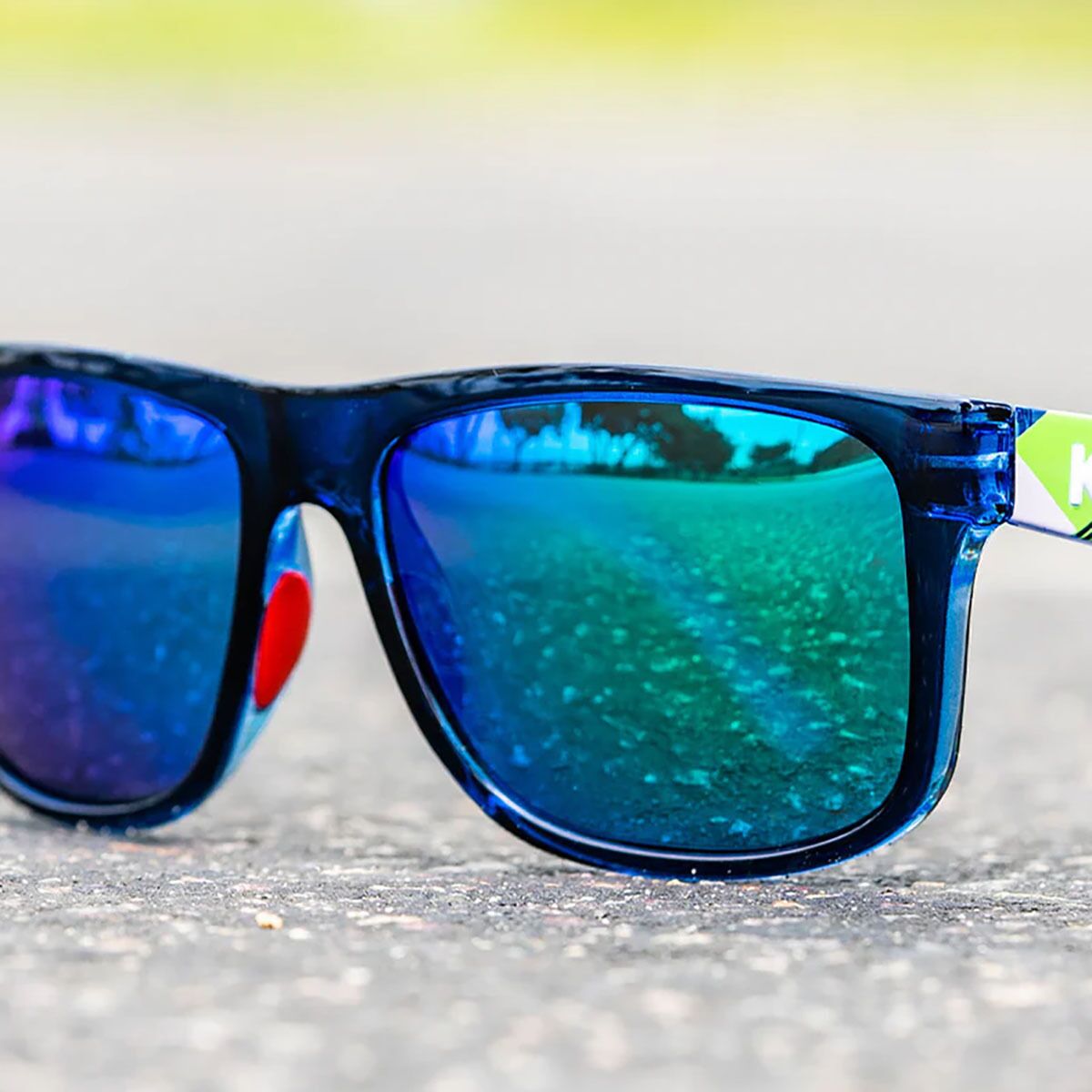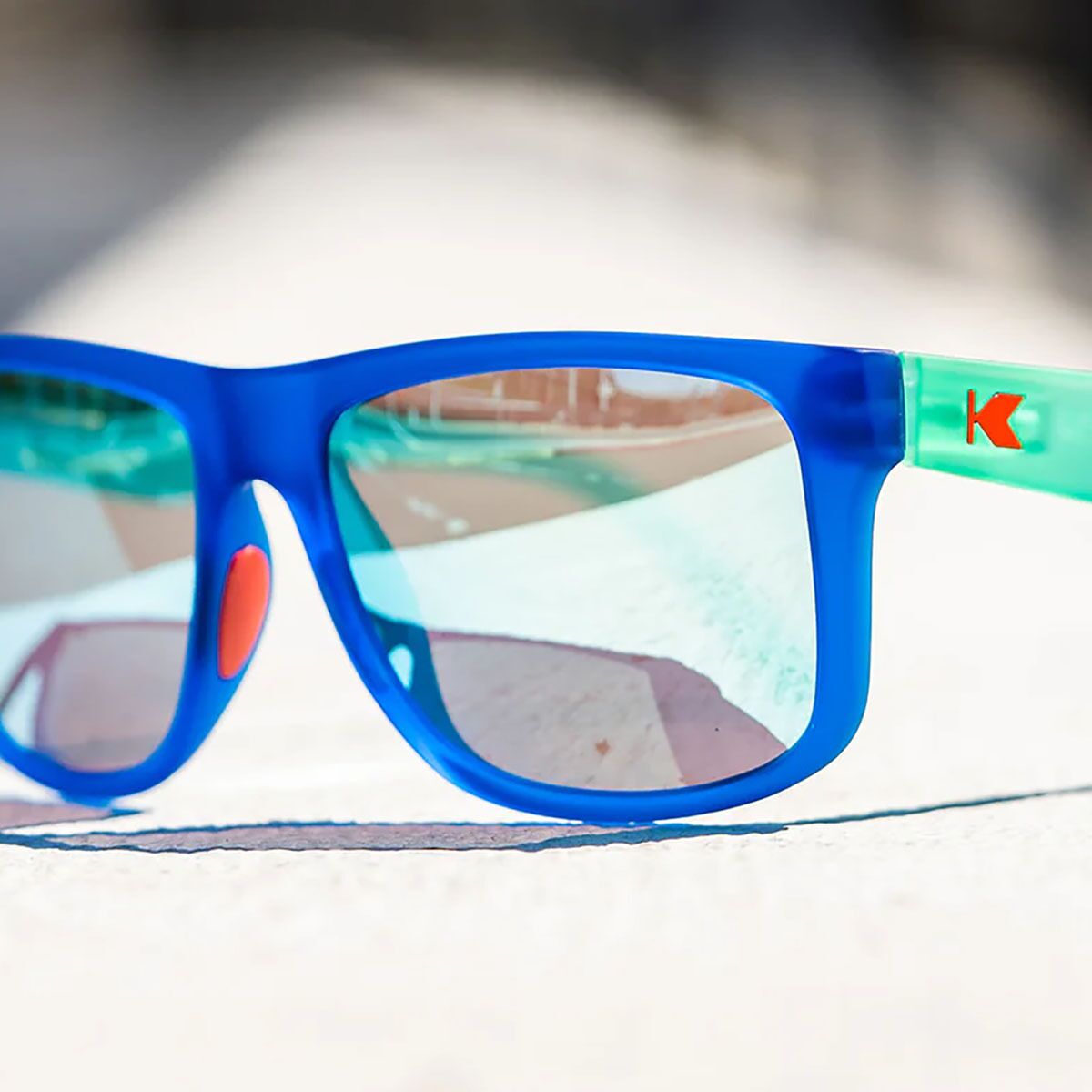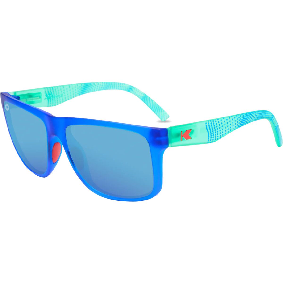 Embedded red rubber nose pads add no-slip grip for high-movement activities, and the metal spring hinges ensure a secure yet flexible fit. Finished with mint K logos for a fresh pop of style and an included microfiber pouch for easy storage, the Torrey Pines Sport sunglasses are built for those days when performance and comfort both matter most.