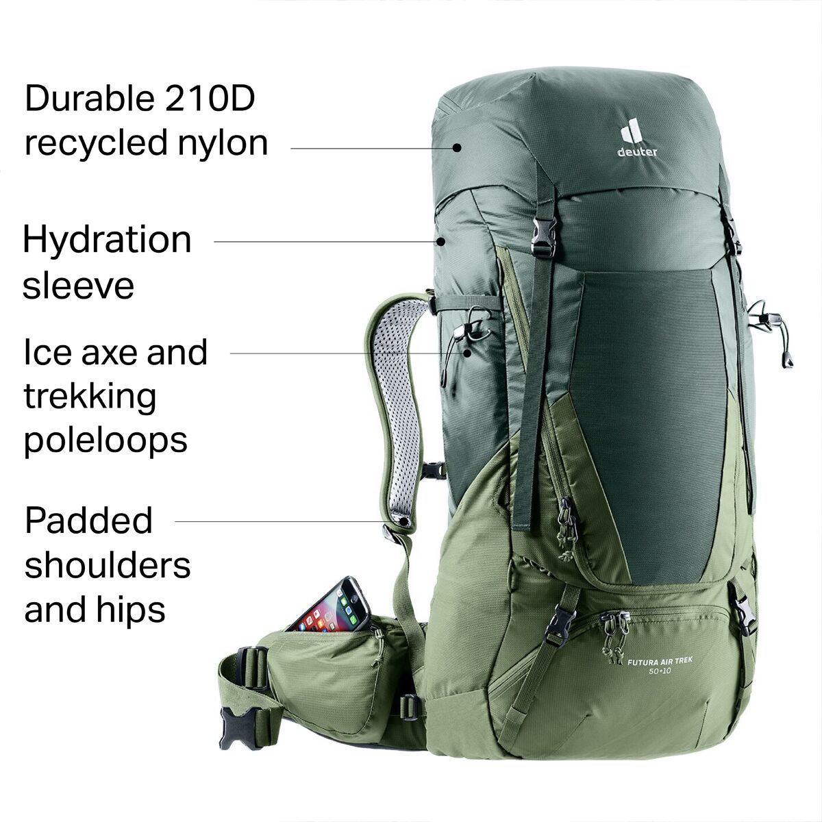 Futura Air Trek 50+10L Backpack The Deuter Futura Air Trek 50 + 10L Backpack gives us the comfort and ventilation we need when backpacking exposed trails during warmer months. The...