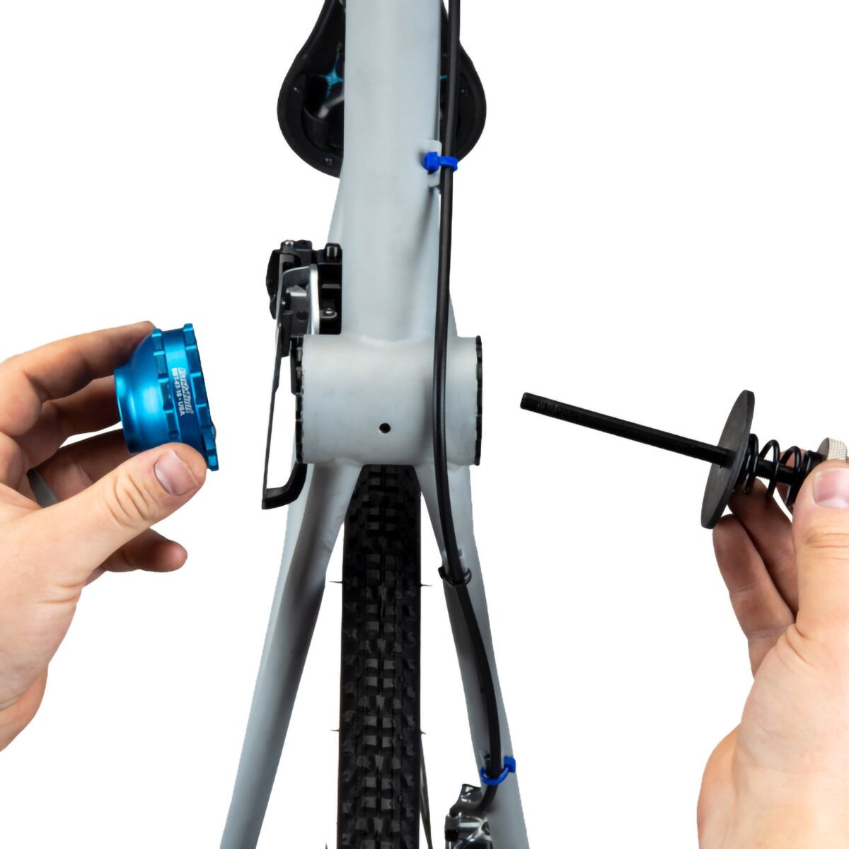 Bottom brackets have some of the highest torque specs of any component found on a bicycle. Despite this, some bottom bracket cups feature tool fittings that allow mere millimeters of engagement, which can be a problem when attempting removal or installation. Solution: the Park Tool Bottom Bracket Tool Retaining System. Used in conjunction with nearly any Park Tool bottom bracket tool, the BBT-RS uses a spring-based tension system to apply consistent, adjustable pressure to the tool, ensuring full engagement with the tool fitting and preventing slippage.