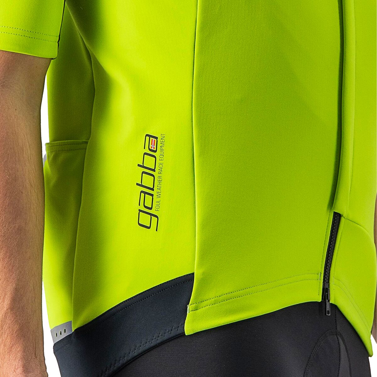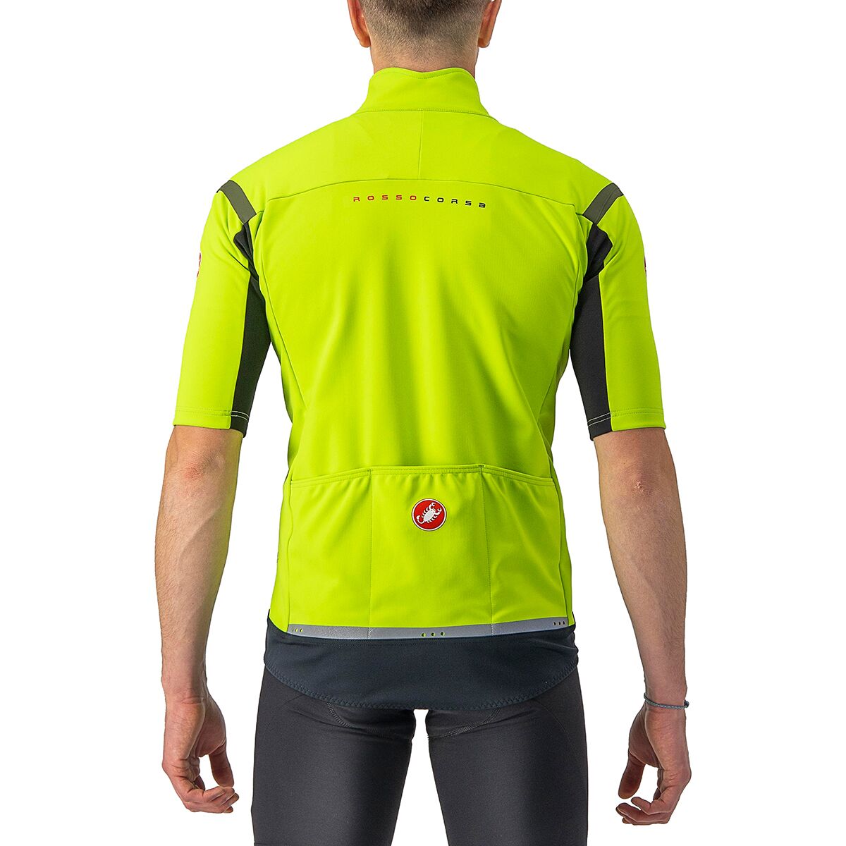 The Castelli Gabba RoS Jersey is back and better than ever in its 5th generation model, providing us with excellent water resistance, breathability, and comfort. Whether we seek protection on a rainy spring day or a little extra warmth on a brisk fall morning, we pull this short-sleeve jersey on to keep our body dry and our core warm. Its front-facing GORE-TEX INFINIUM WINDSTOPPER 205 Warm fabric blocks out water, while the rear-facing GORE-TEX INFINIUM WINDSTOPPER 203 Stretch fabric adds stretch and breathability.