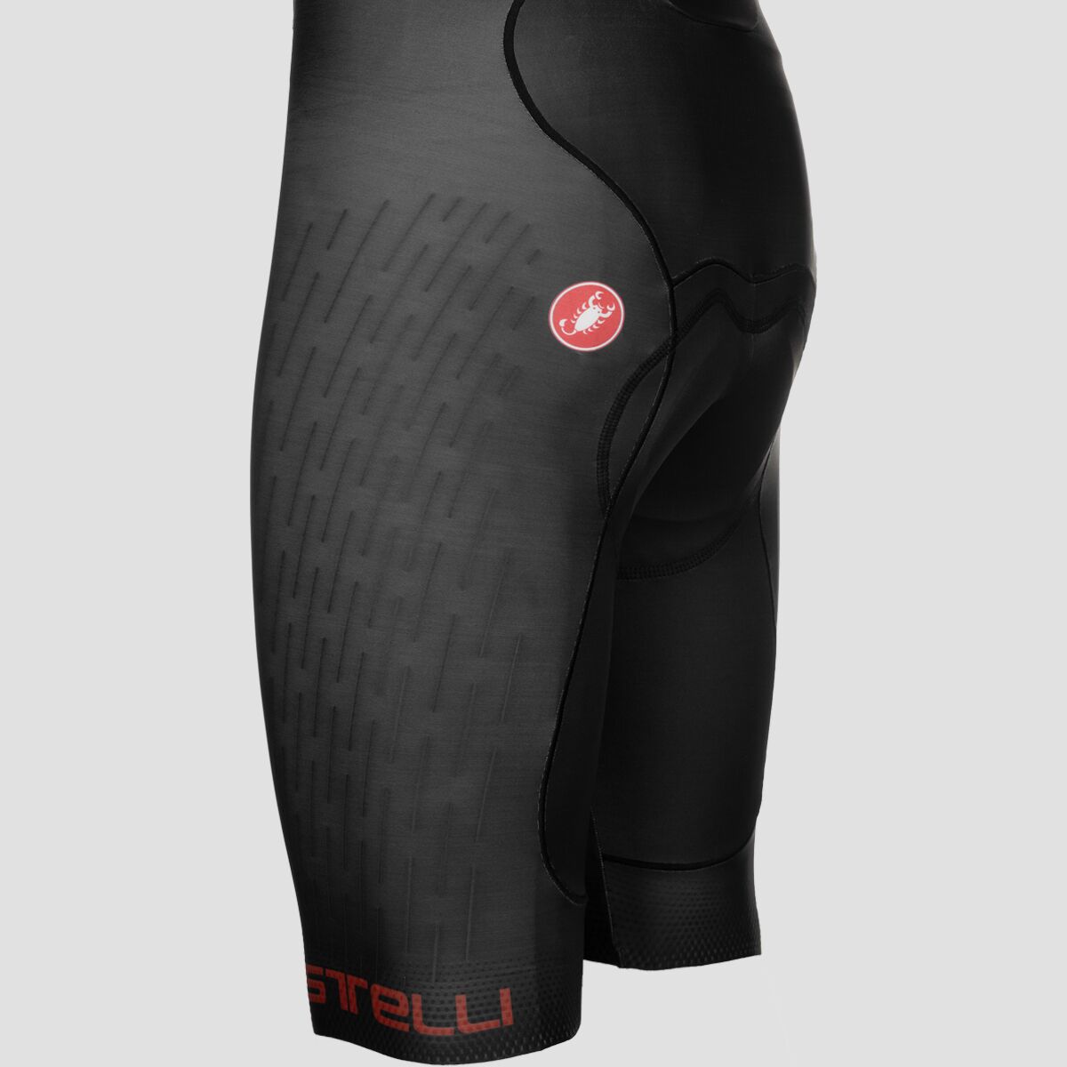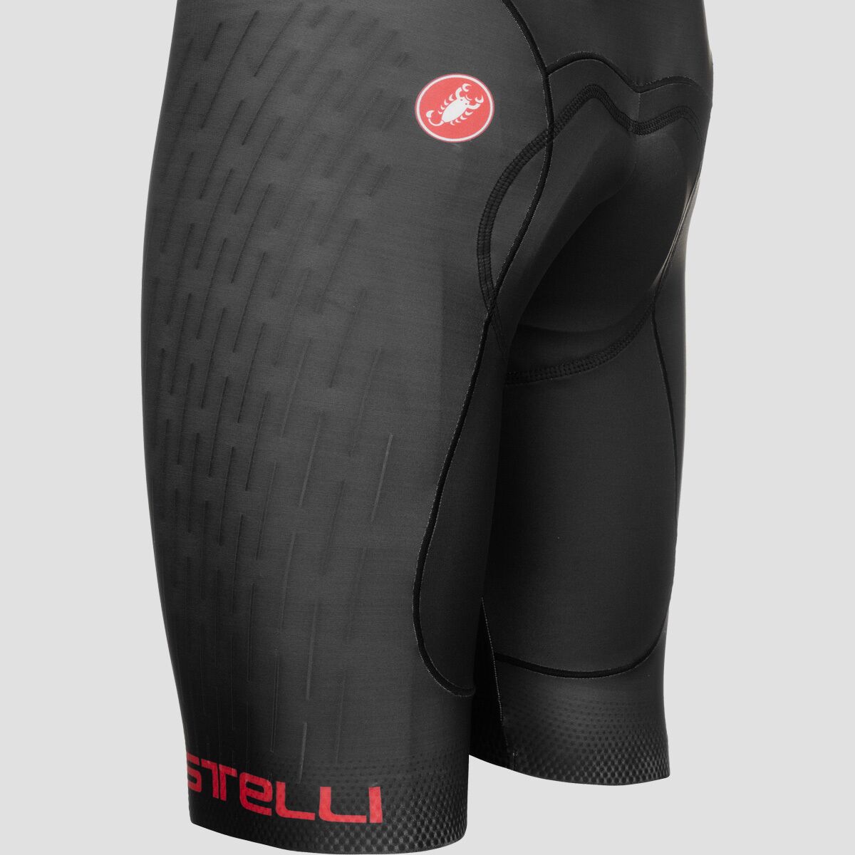 Aerodynamic race bibshorts with Forza2 fabric, Progetto X2 chamois, and UPF 50+ sun protection
