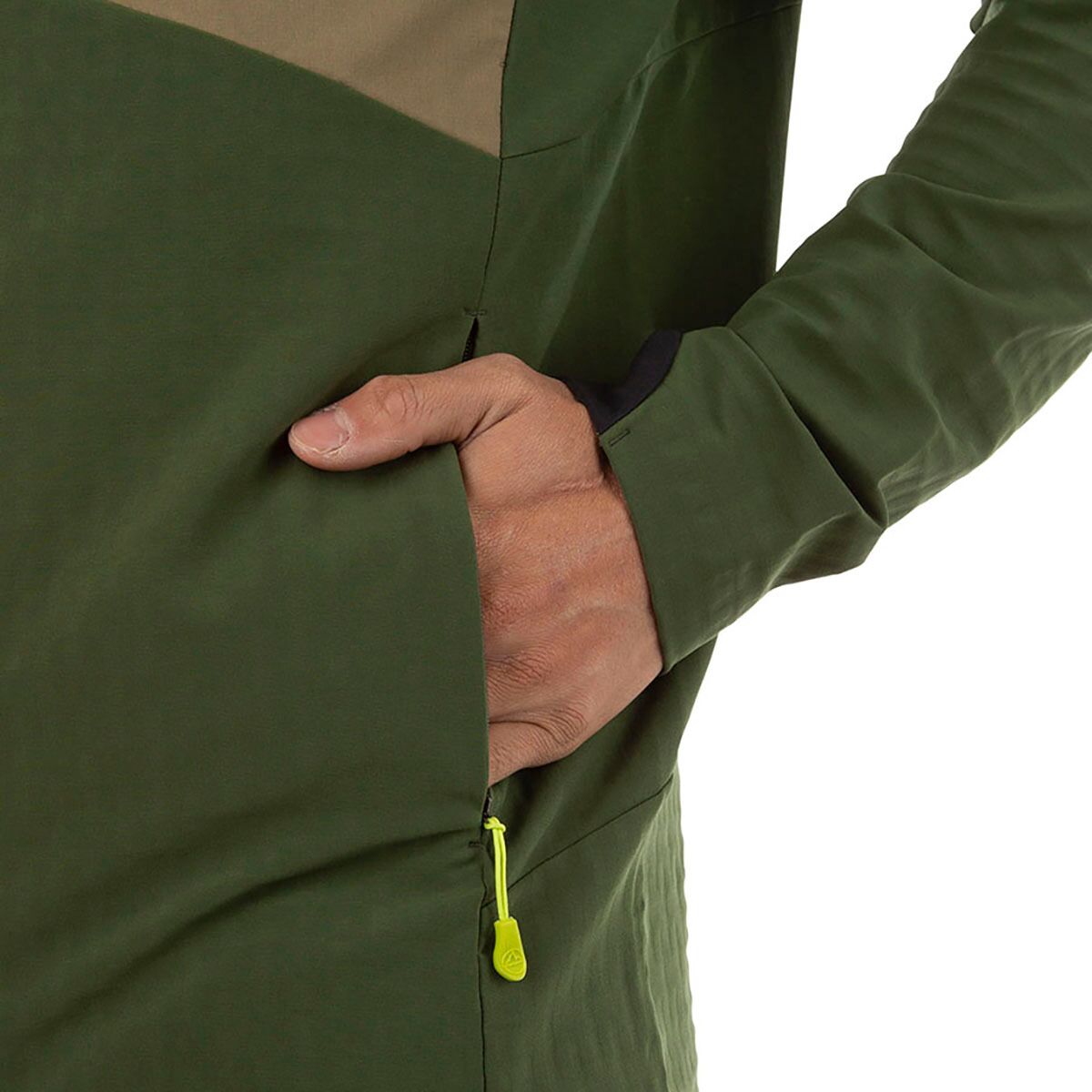 - [face fabric] 91% recycled polyester, 9% elastane, PFC-free DWR treatment, [cuff insert] 83% recycled polyester, 17% elastane, [chest pocket] 85% recycled nylon, 15% elastane, [pocket bag] 100% recycled polyester