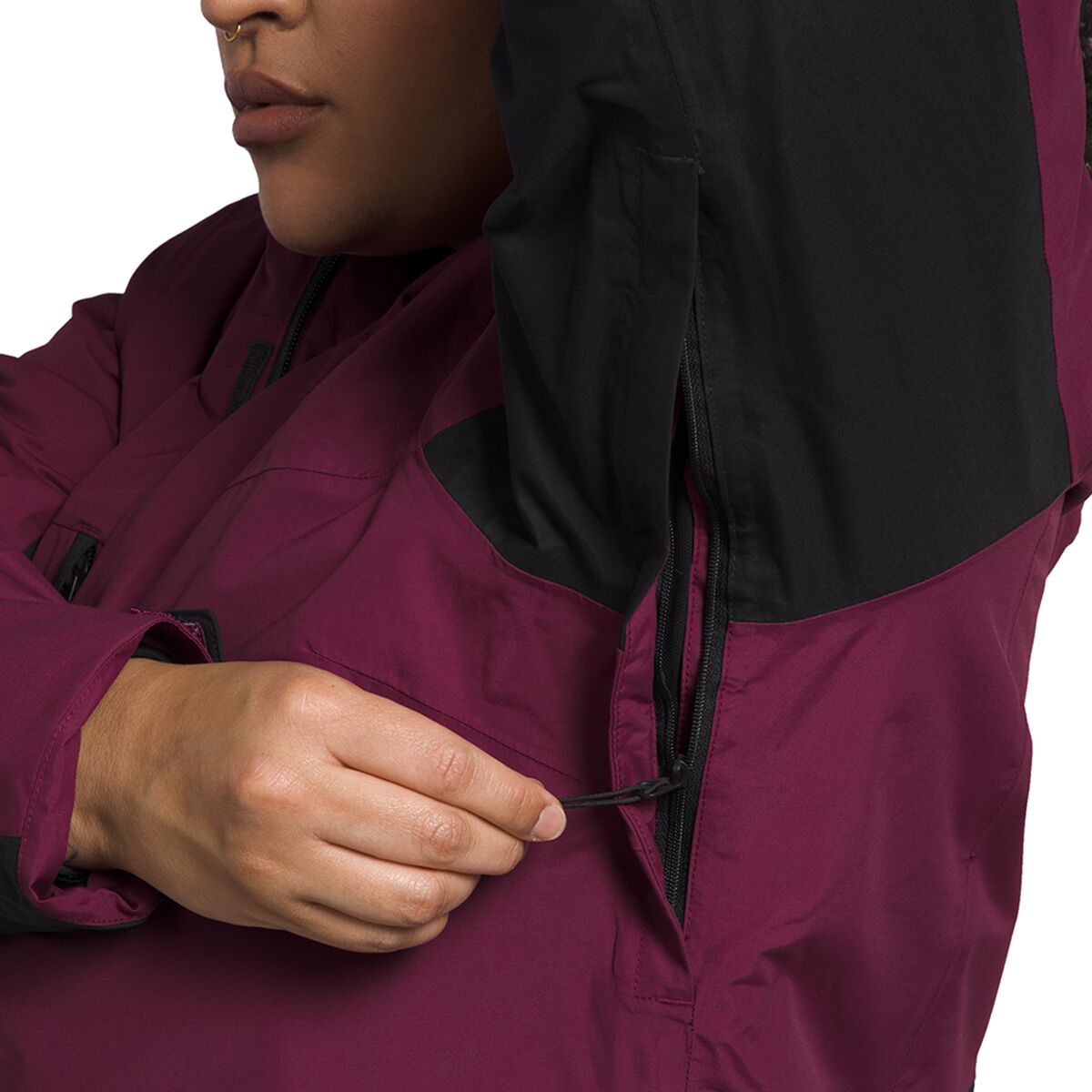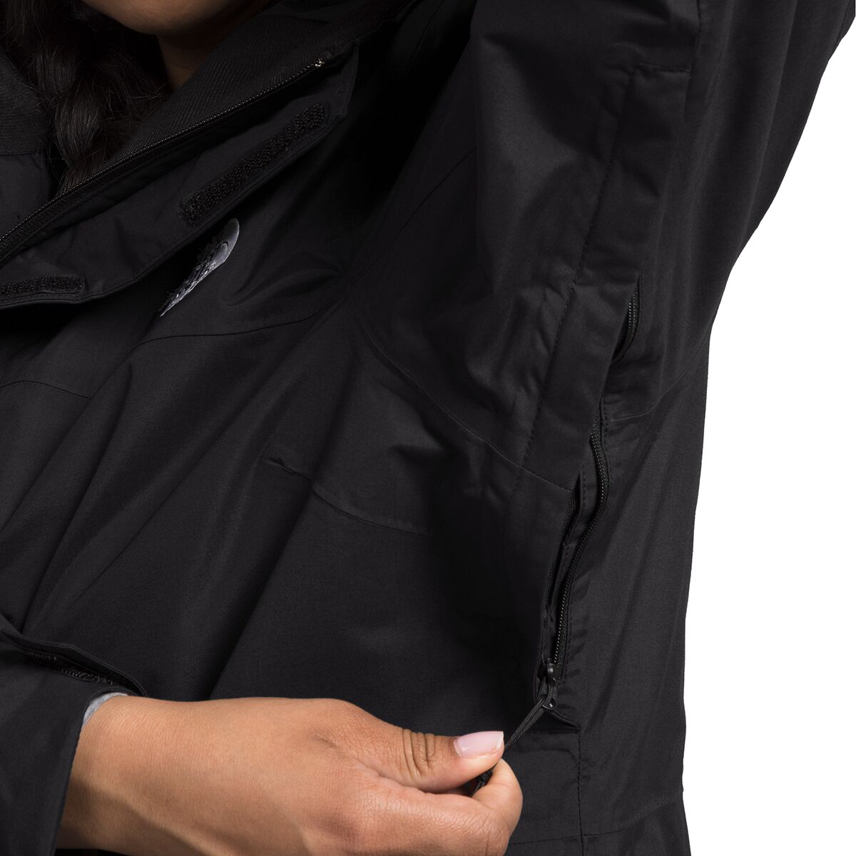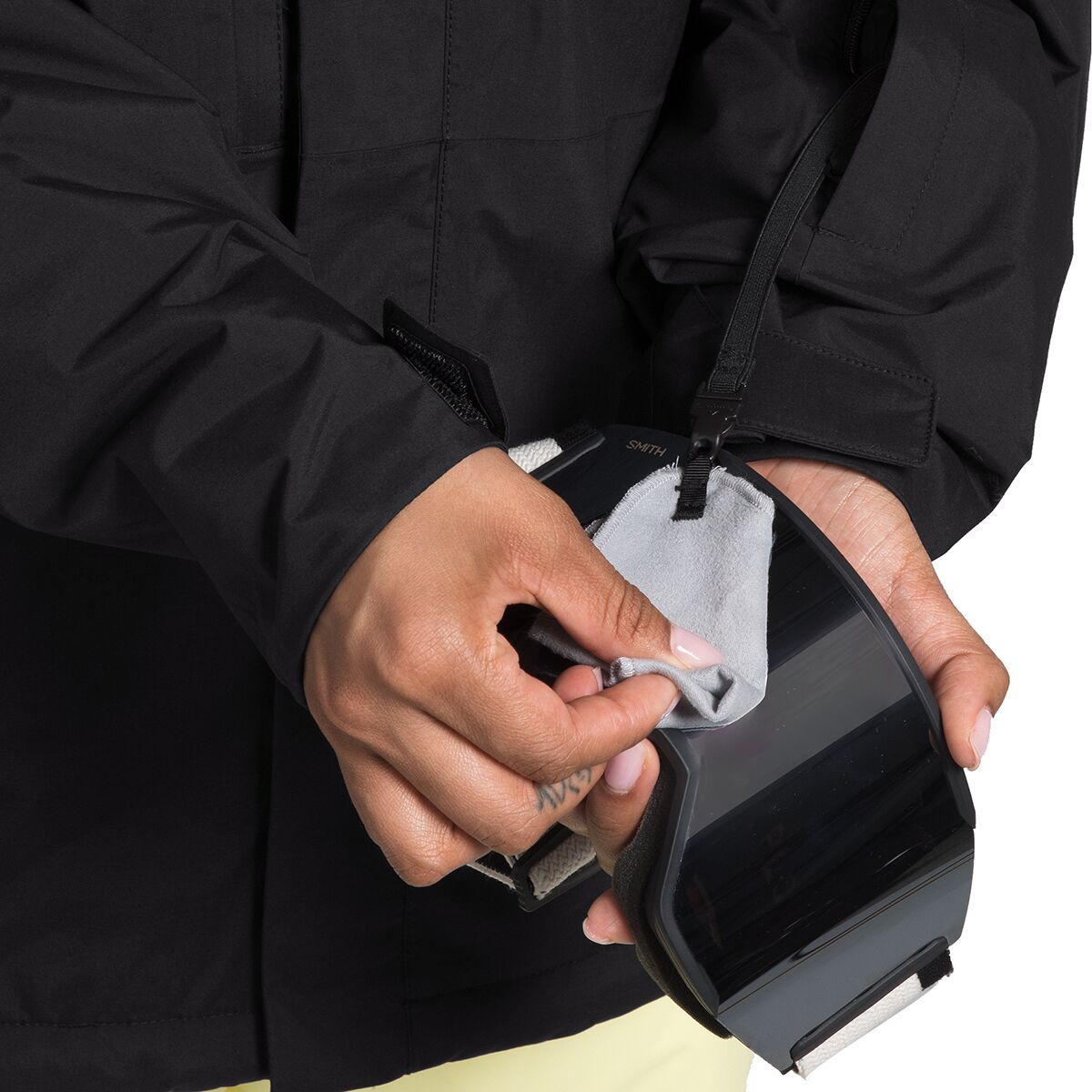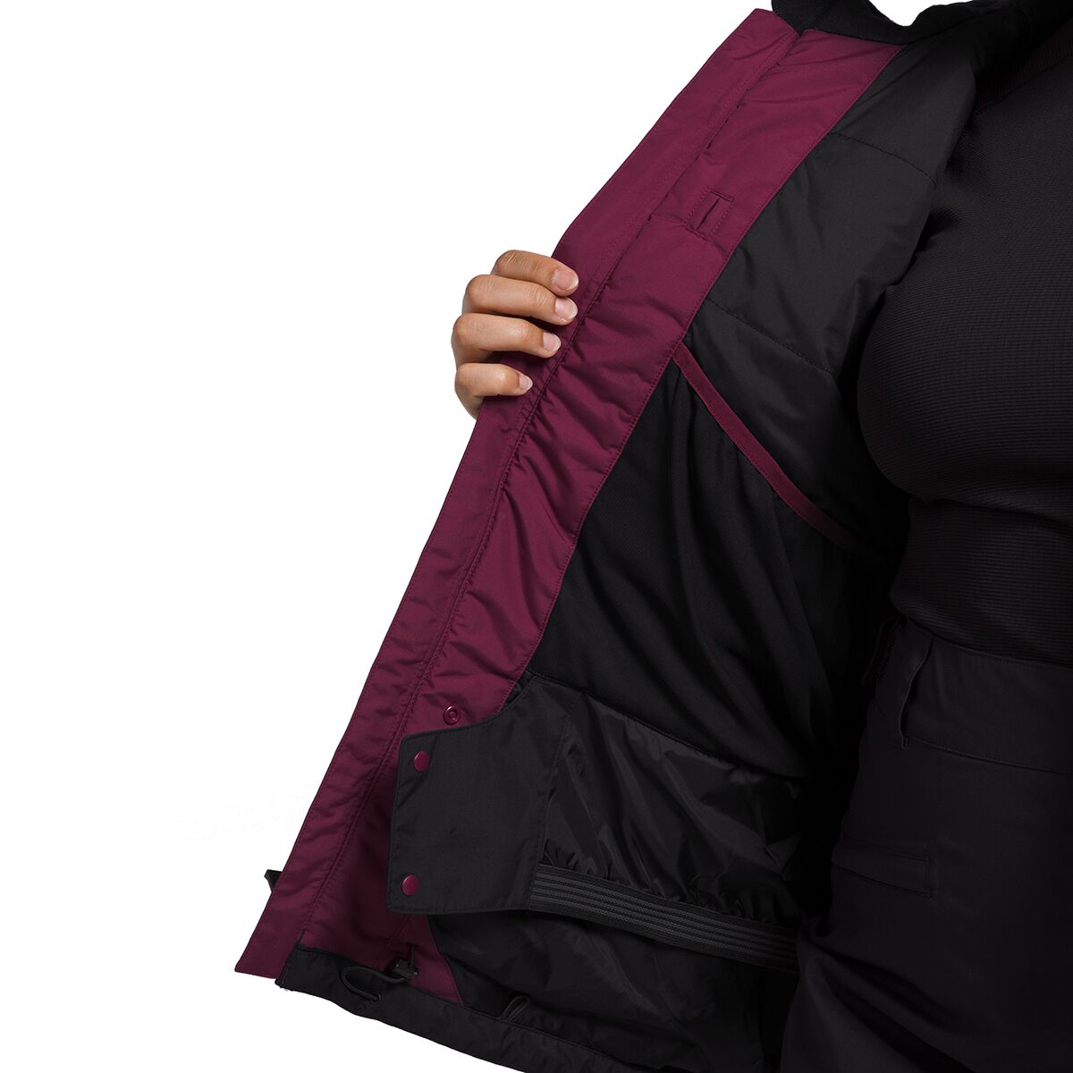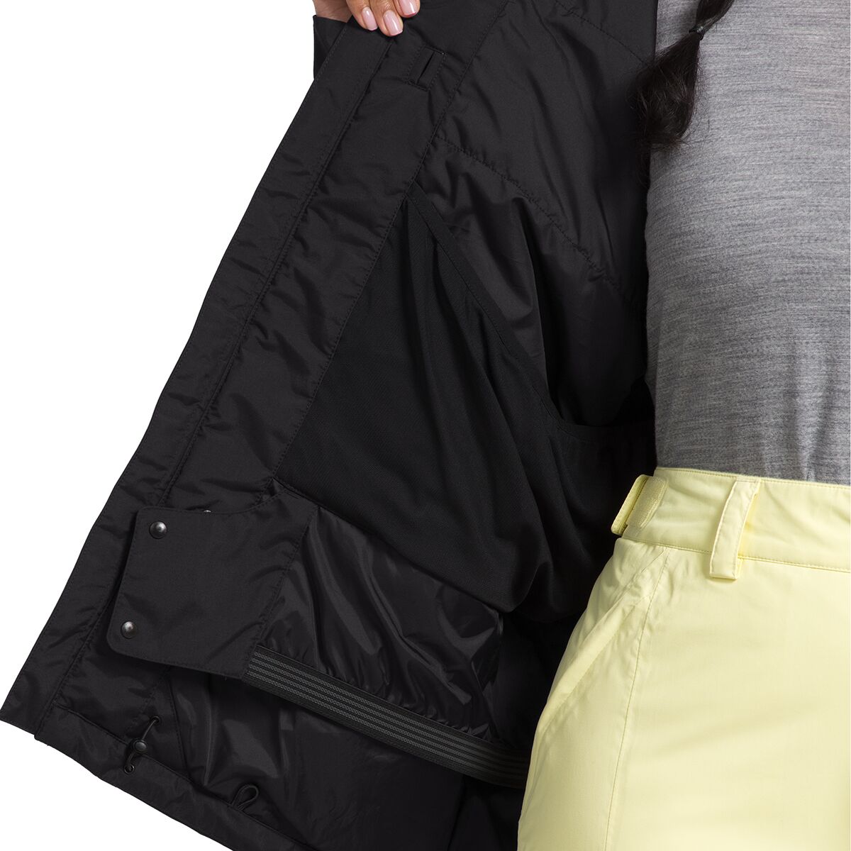 - Powder skirt and adjustable hem keep snow out of our jacket
