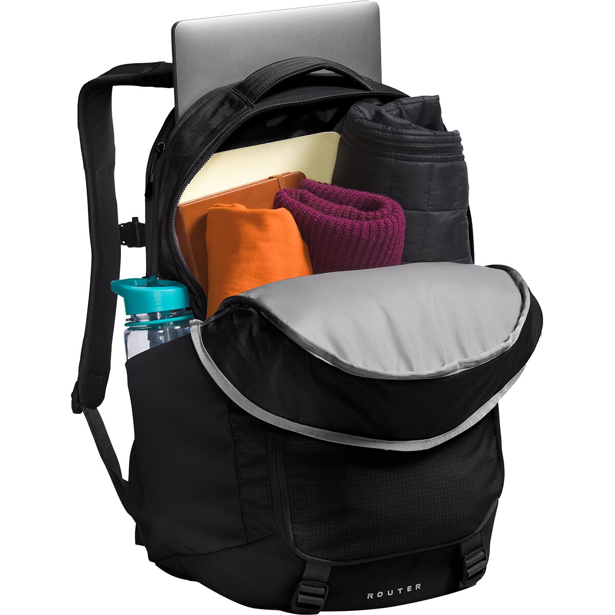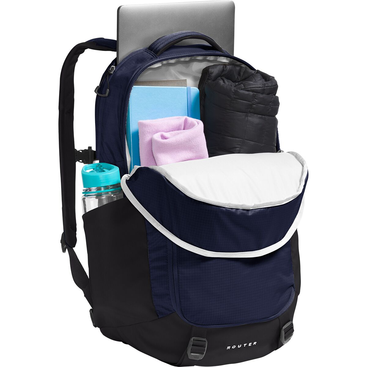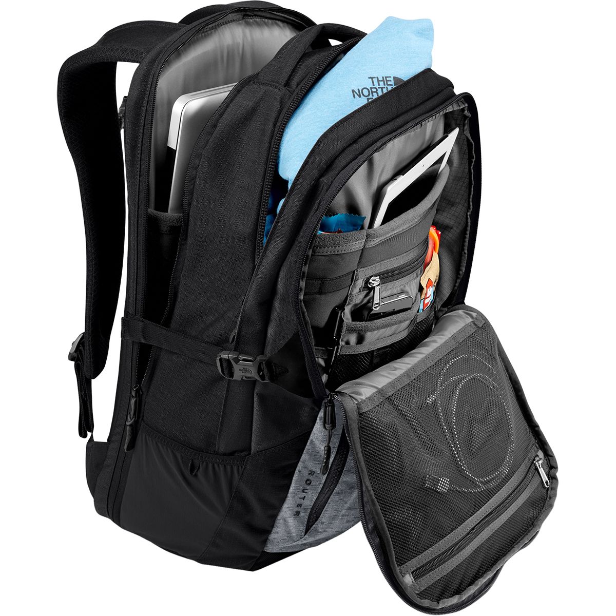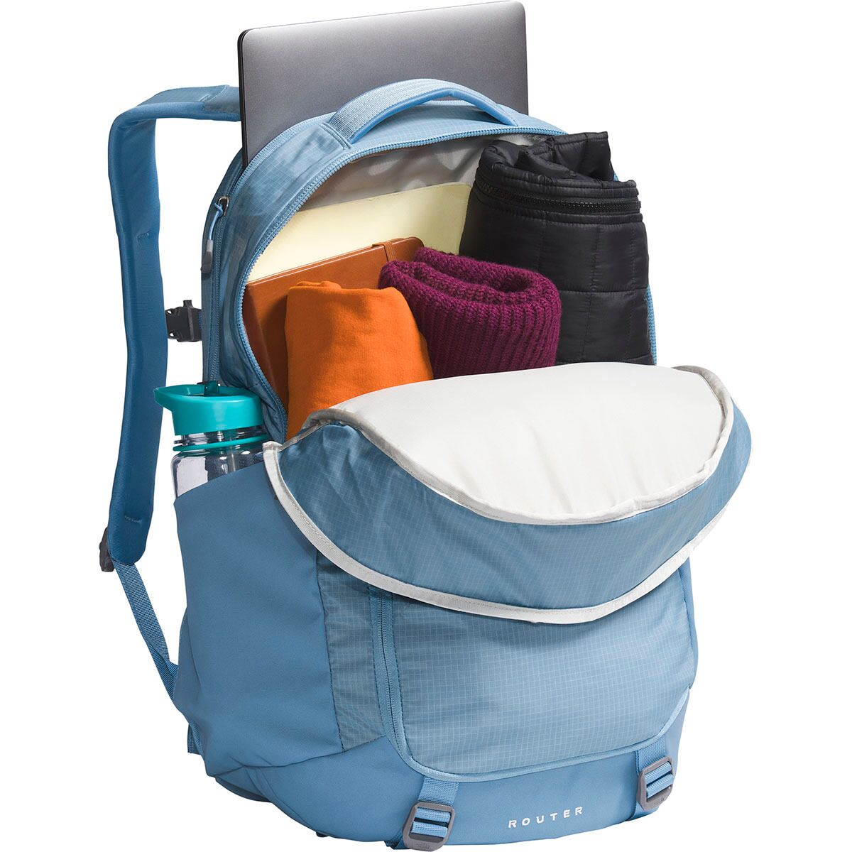 Why We Like The Router 40L Backpack Stash your laptop in The North Face Router Backpack, hop on your trusty, two-wheeled steed, and enjoy the ride across campus. A little jostling...