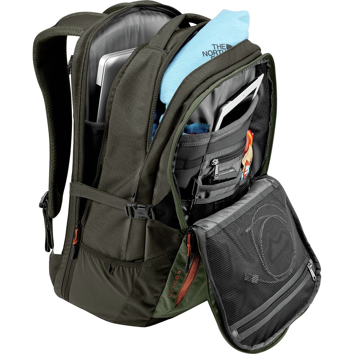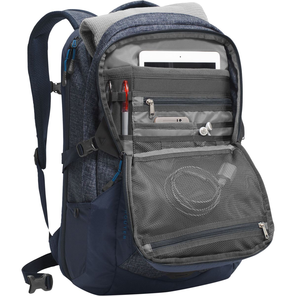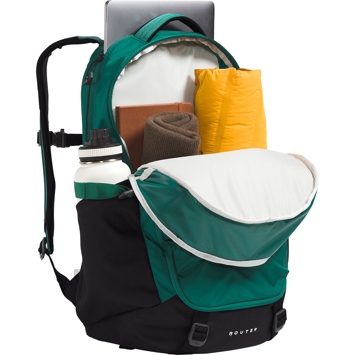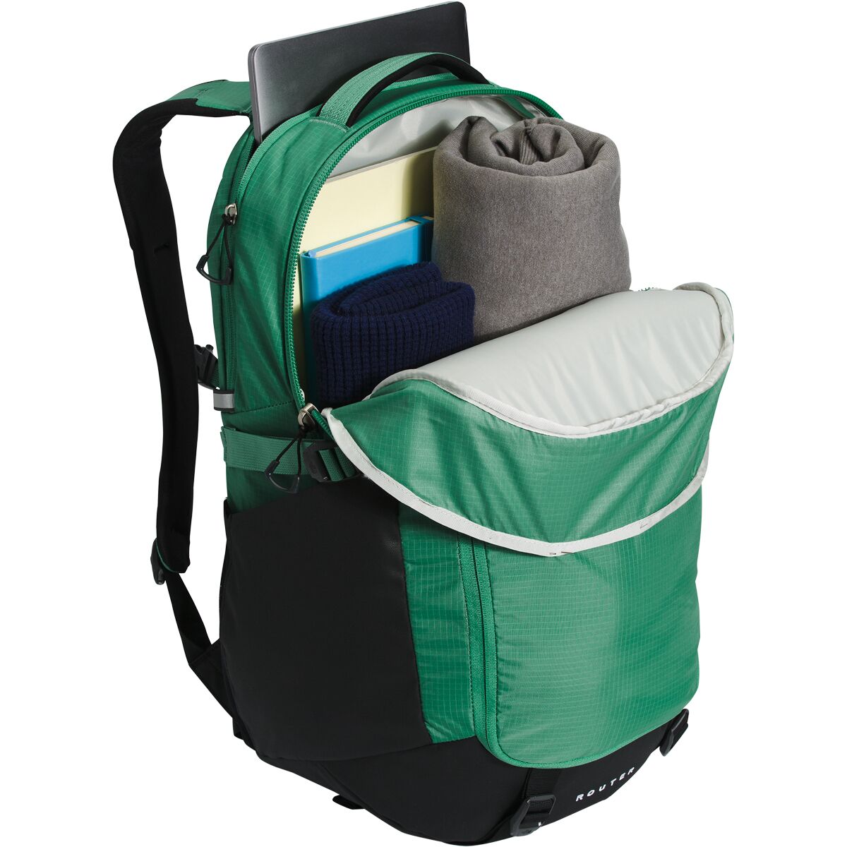 Why We Like The Router 40L Backpack Stash your laptop in The North Face Router Backpack, hop on your trusty, two-wheeled steed, and enjoy the ride across campus. A little jostling...