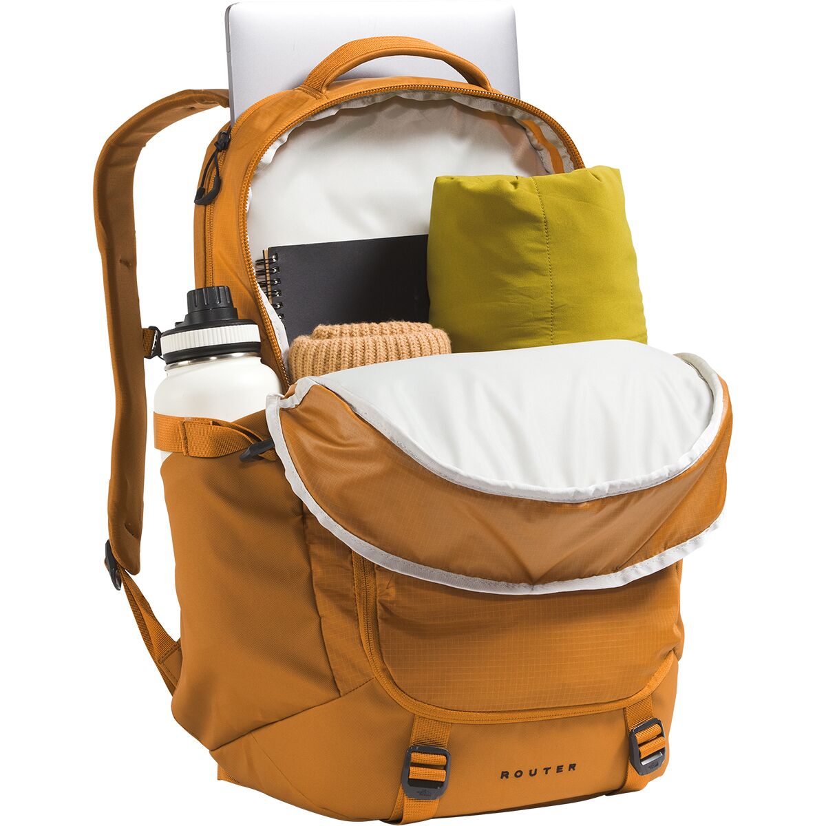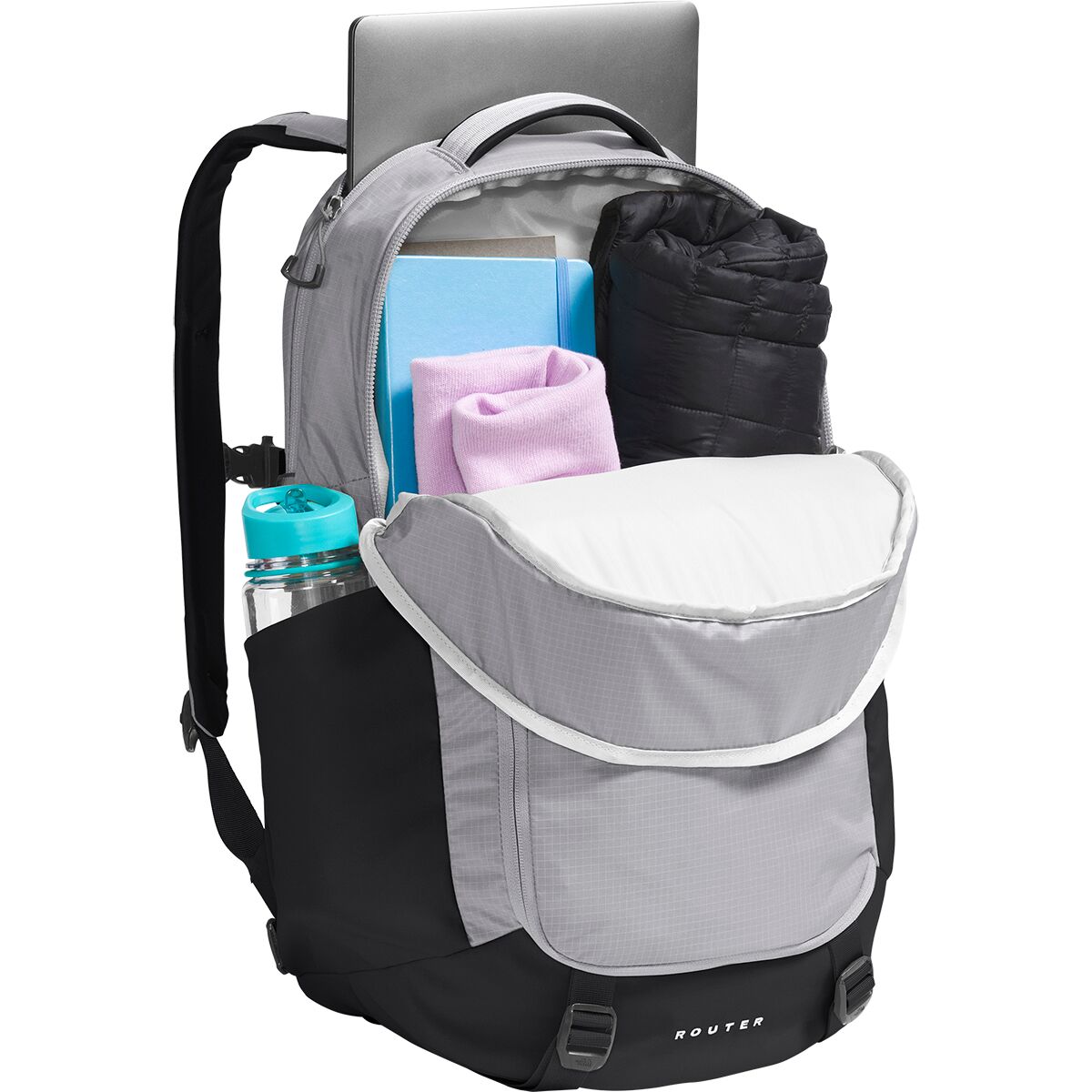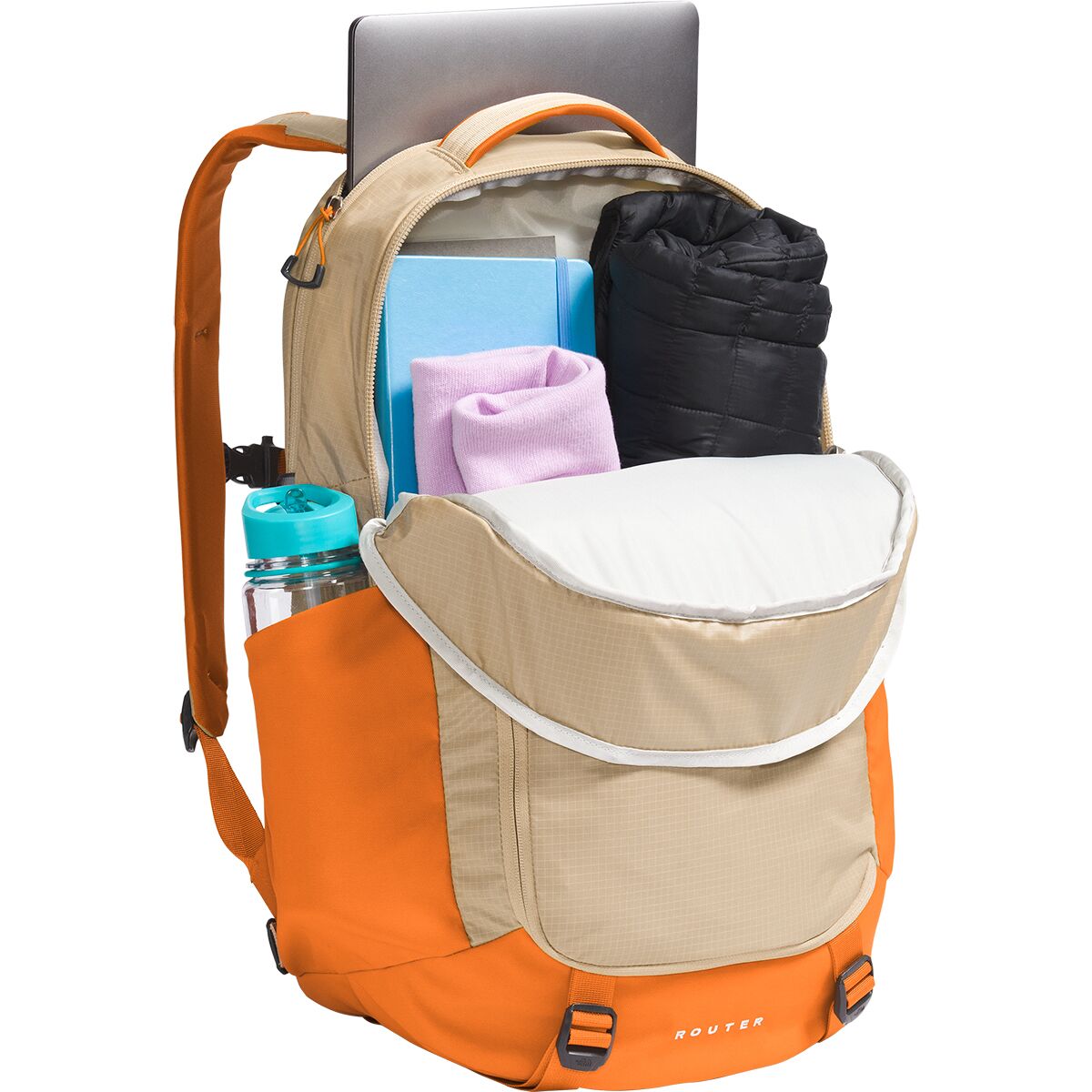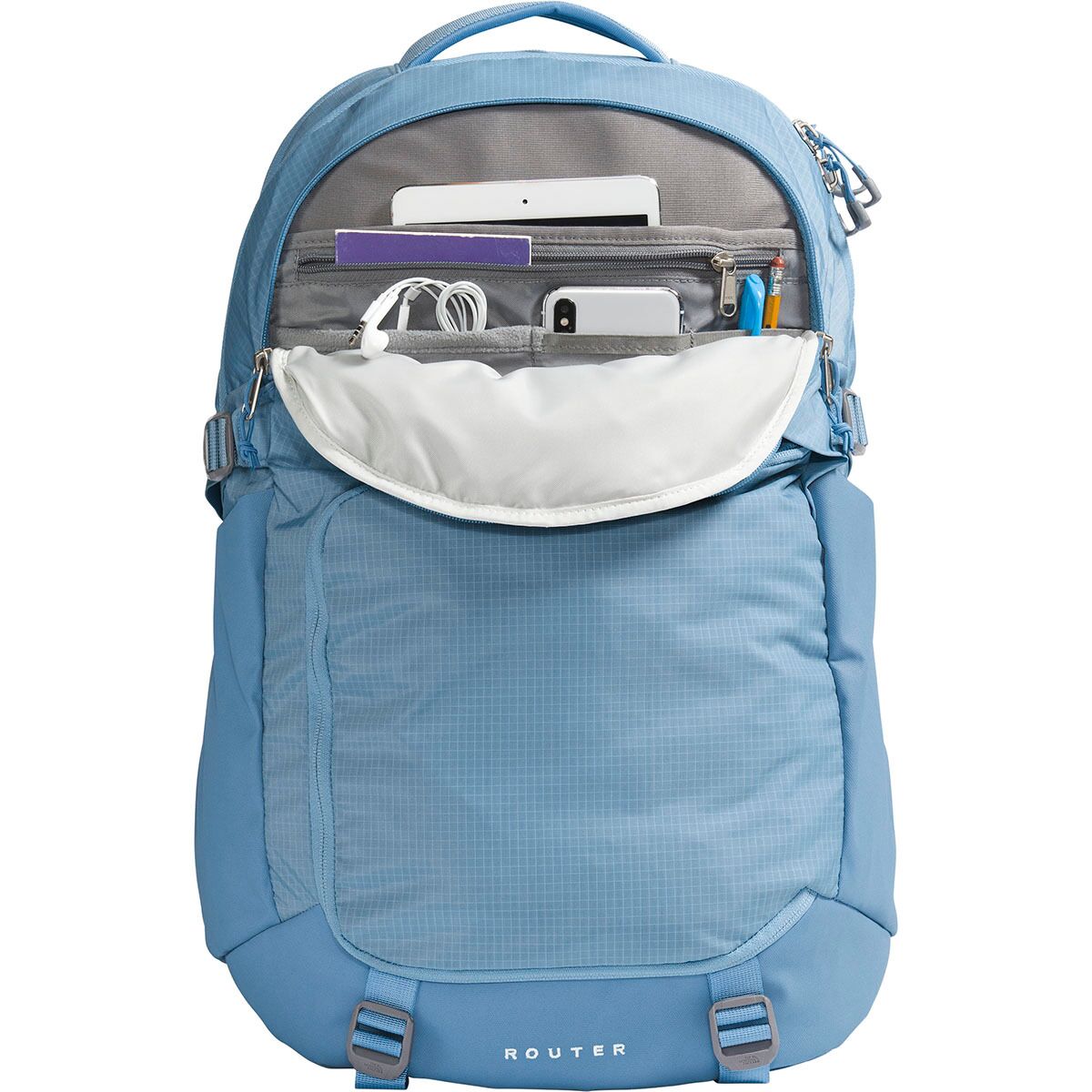 Why We Like The Router 40L Backpack Stash your laptop in The North Face Router Backpack, hop on your trusty, two-wheeled steed, and enjoy the ride across campus. A little jostling...