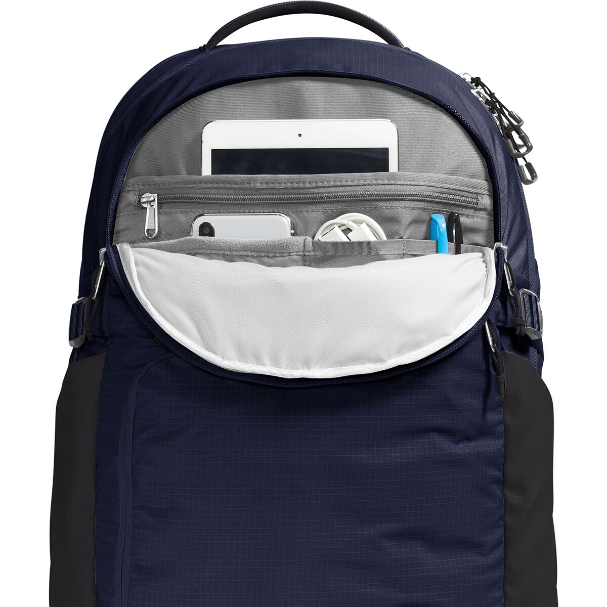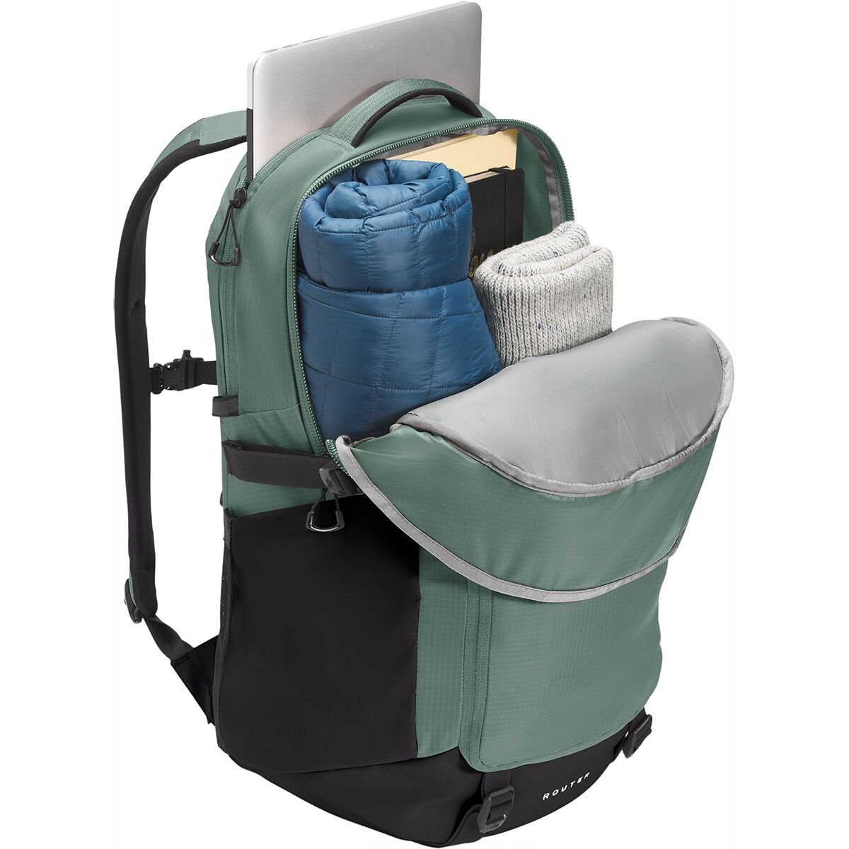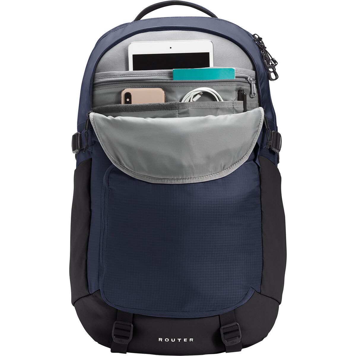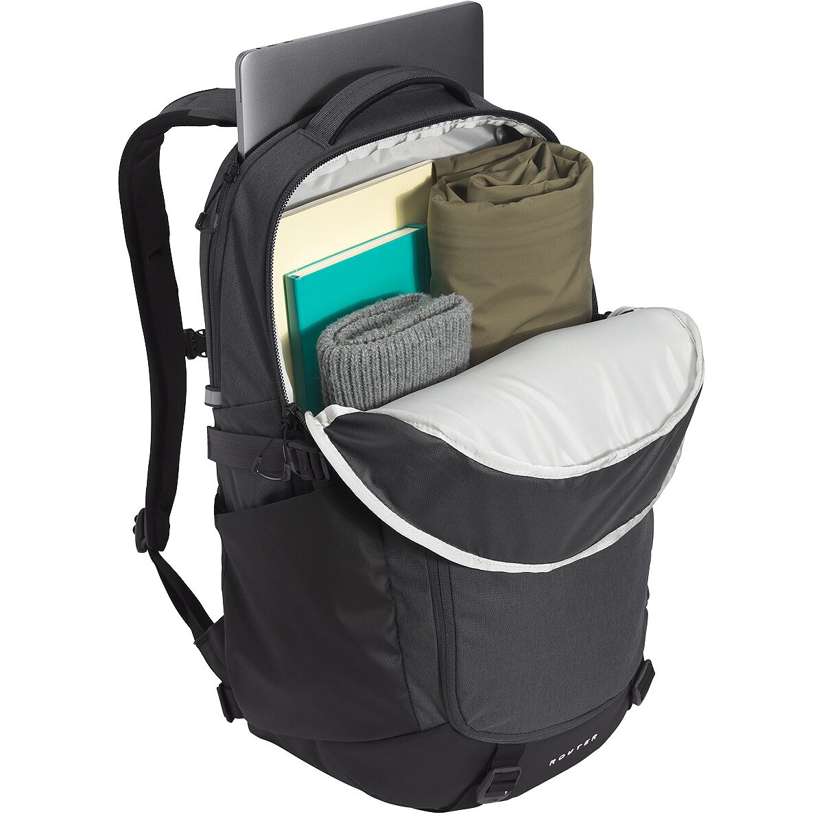 Why We Like The Router 40L Backpack Stash your laptop in The North Face Router Backpack, hop on your trusty, two-wheeled steed, and enjoy the ride across campus. A little jostling...