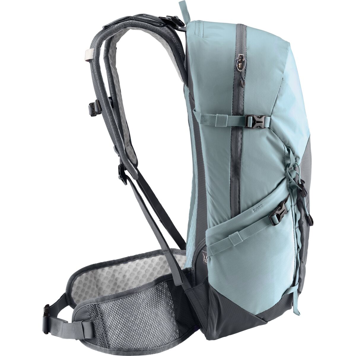 - 1 stretch mesh front, 2 side, 1 zippered harness, 1 zippered hip belt