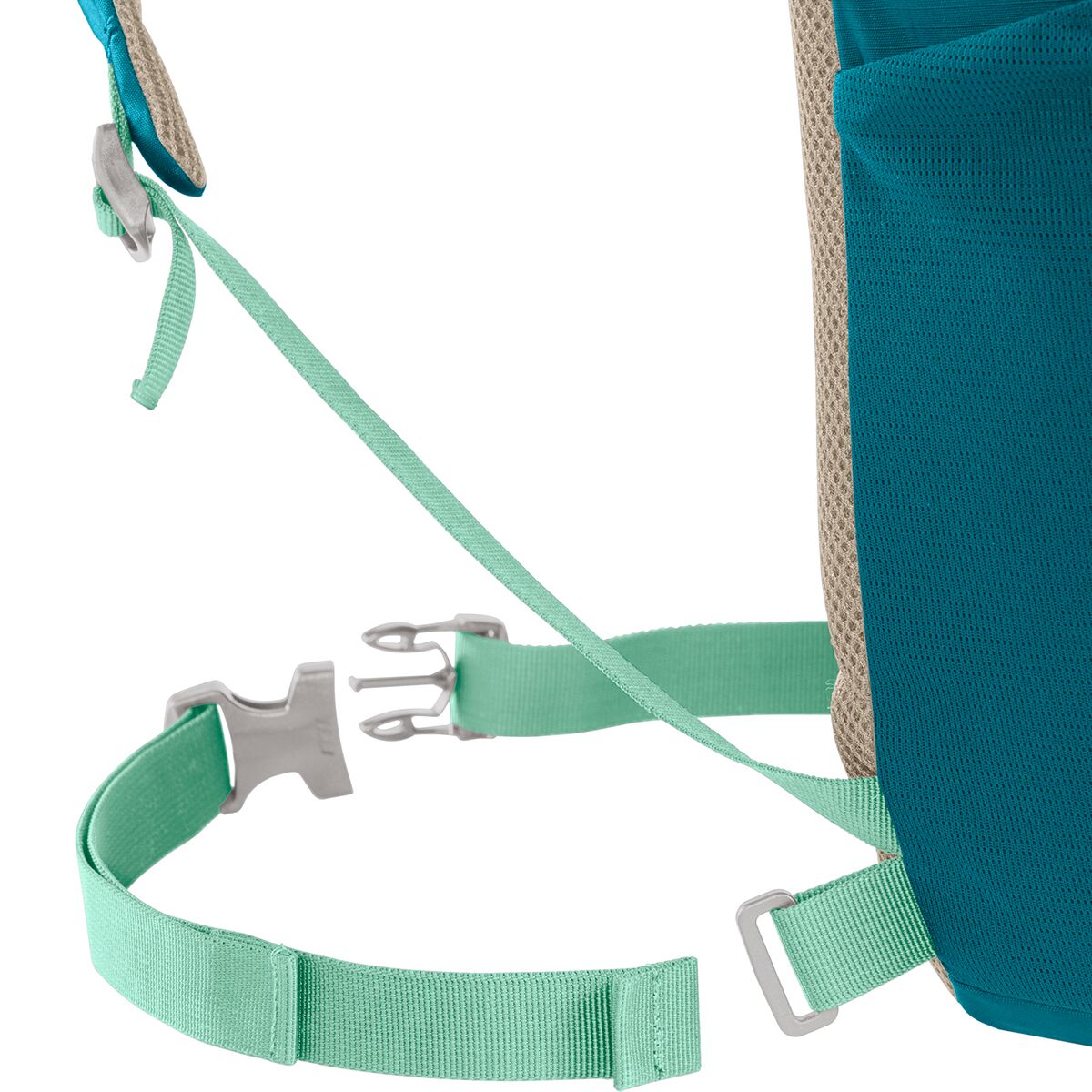 • Trekking pole carry keeps poles accessible on challenging terrain