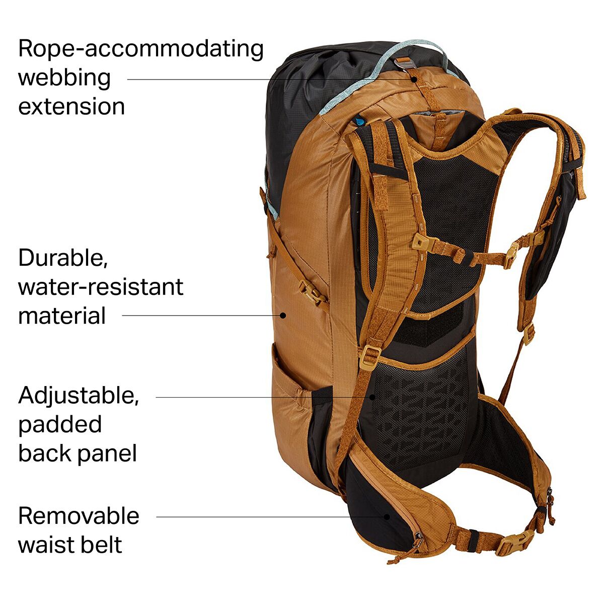 • Webbing extension holds a climbing rope or rain jacket