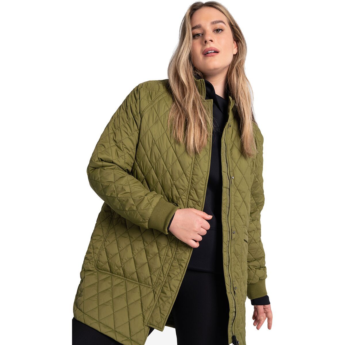 When we are looking for casual style and lightweight warmth, the Lole 3/4 Bomber Jacket is our go-to. This bomber jacket features a extra-long length for more warmth and has diamond-shaped baffles of synthetic insulation to keep us toasty when we are out in the cold. Two hand pockets allow us to take along our essentials items, and a full zip-up and button-up design allows us to customize our fit and warmth.