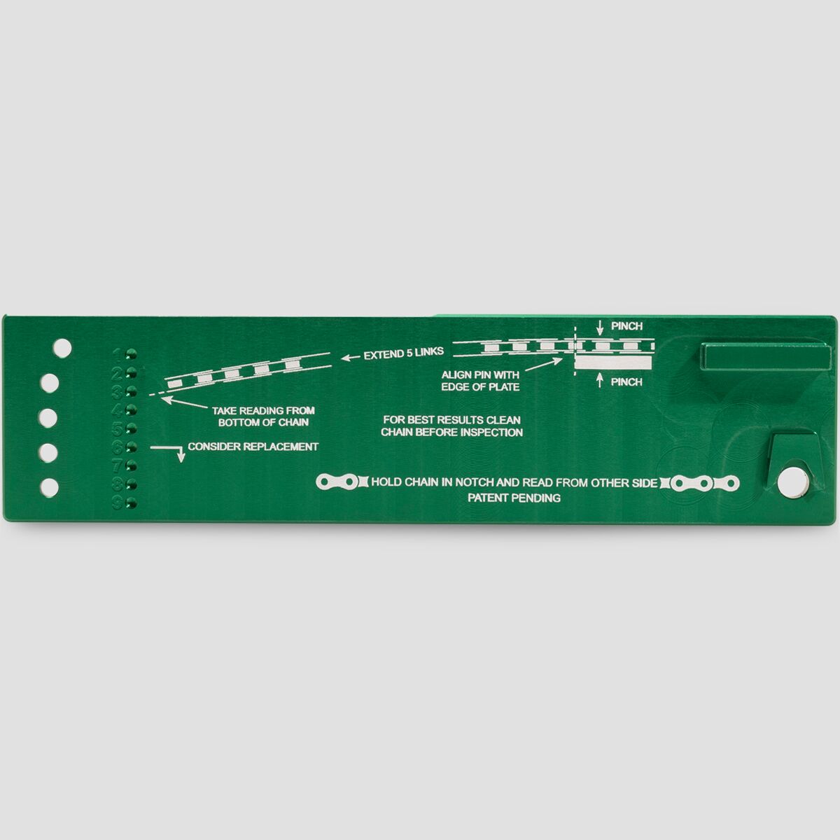 • Simple design allows for easy, accurate chain wear assessment